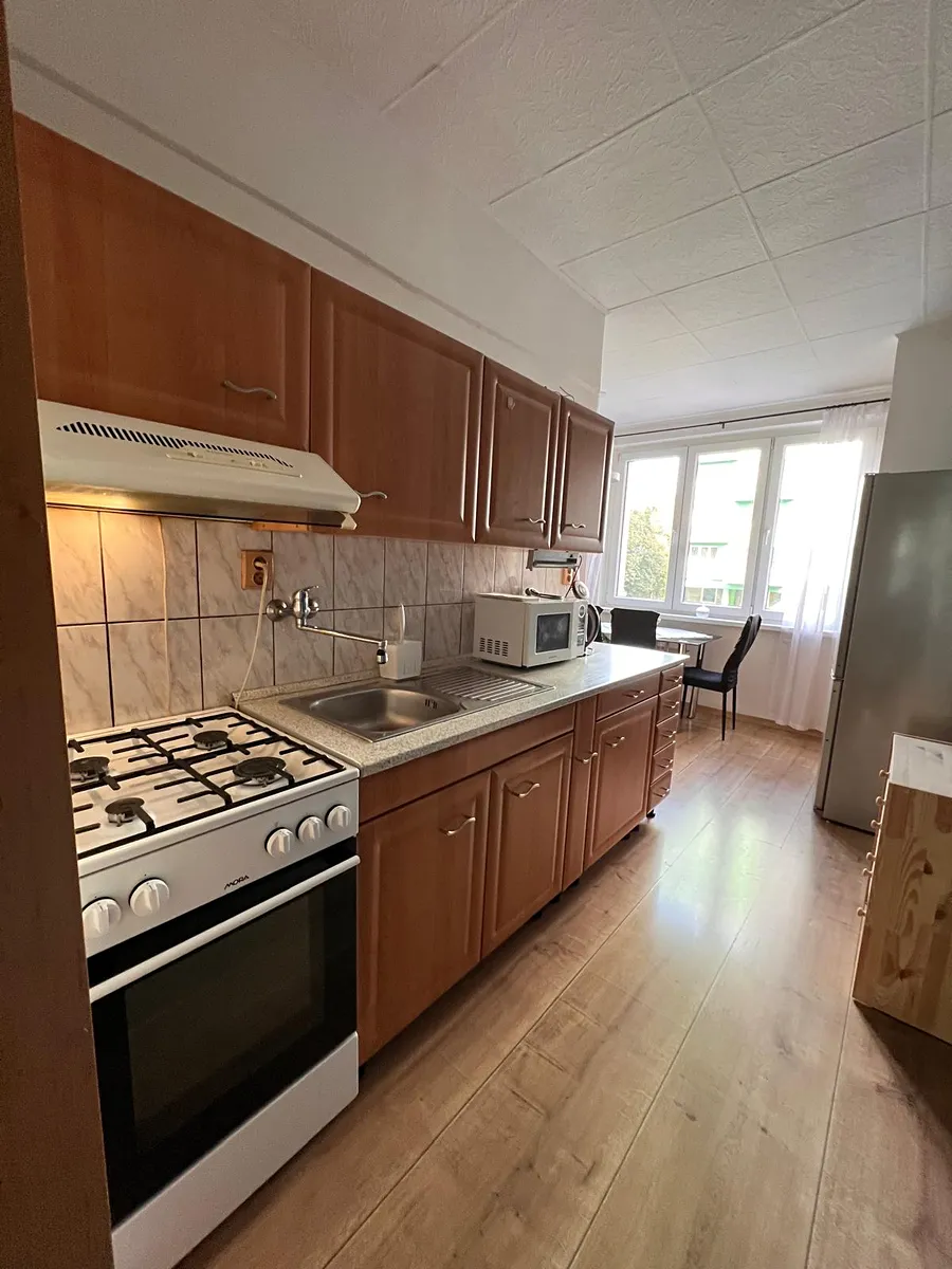 Byt je prostorný, s užitnou plochou 84,76 m², a nabízí tedy dostatek prostoru pro rodinné bydlení. Jeho dispozice zahrnují lodžii, ideální pro chvíle odpočinku, a praktický sklep pro uskladnění sezónních věcí. Parkování je možné před domem, což zajistí pohodlné a bezstarostné bydlení.