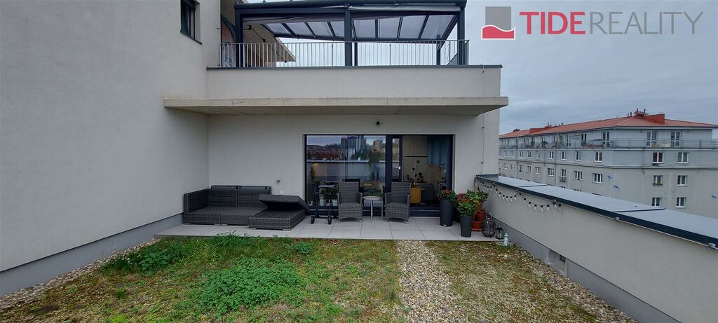 Nabízíme k pronájmu moderní, nezařízený byt 3+kk ( 75 m2) s velkou terasou ( 50 m2) a parkovacím místem v podzemních garážích. Byt se nachází v nedávno dokončené novostavbě na klidném místě ve Strašnicích 10 min chůze od stanice metra Strašnická. Byt sestává z obývacího pokoje spojeného s plně vybavenou a moderní kuchyní s přímým vstupem na úžasnou a prostornou z části zatravněnou privátní terasu, 2 ložnic, které mají výstup na dlouhý balkon a obě jsou situované do klidné a tiché zástavby, koupelny se sprchovým koutem, samostatného WC a chodby. Součástí nájmu je rovněž sklepní kóje v suterénu domu. V bytě jsou vestavěné šatní skříně a vertikální žaluzie ve všech oknech. Byt se nachází v 7.patře s výtahem a je orientovaný na jihozápad. Volný od 1.1.2026. Byt je zkolaudován jako ateliér tak je vhodný i na kanceláře, či pro společnosti které jsou plátci DPH.