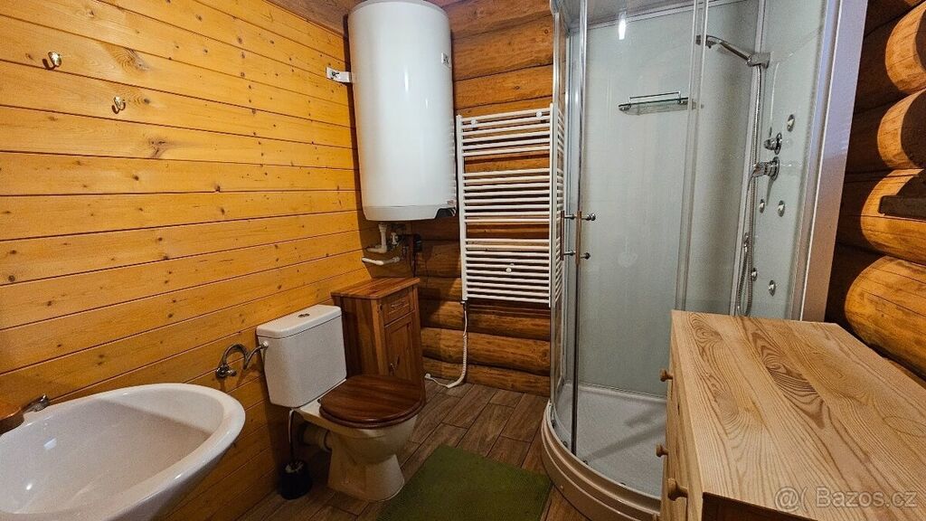 Nabízíme k prodeji hezký rodinný dům srub. typu (2013) v Radouni u Štětí, 3+kk, 2 koupelny s WC, ohřev vody v boileru 125 l s cirkulačním čerpadlem. V kuchyni jsou instalovány odpady a přívody vody pro myčku a pračku. Energetická náročnost budovy "C", vytápění krbovými kamny. Vnitřní podlahová plocha 80 m2, půda 18 m2.Obvodové stěny jsou ze smrku o průměru kulatiny 25-27 cm, na styčných plochách kulatiny je pero-drážkový spoj izolovaný ovčím rounem. Střecha je sedlová s hambálkovou soustavou krovu, krytina Bramac Natura. Voda ze střechy je zachytávána v podzemní plastové jímce (3,5 m3) s plovákovým čerpadlem, okapy jsou vyrobeny z "oplastovaného" hliníku. Odpady jsou svedeny do domovní BČOV 0,75 m3 s kontinuální aerací (v obci není kanalizace). Je vybudovaná přípojka optického kabelu pro internet a TV. Okna jsou plastová s dvojsklem, vchodové dveře jsou plastové s bezpečnostním kováním, podlahy plovoucí-v kuchyni, předsíni a spodní koupelně je dlažba. Před domem je štěrková parkovací plocha pro 5 aut + jedno zastřešené stání s místností pro zahradní techniku. Hranice pozemku o výměře 1000 m2 lemuje asi 150 tújí smaragd. Doporučujeme prohlídku s naším makléřem. Financování Vám zajistíme.