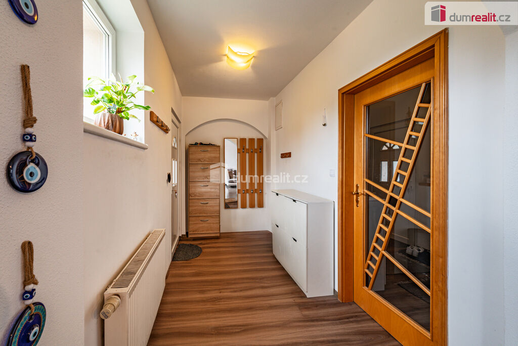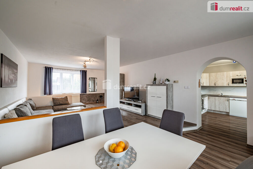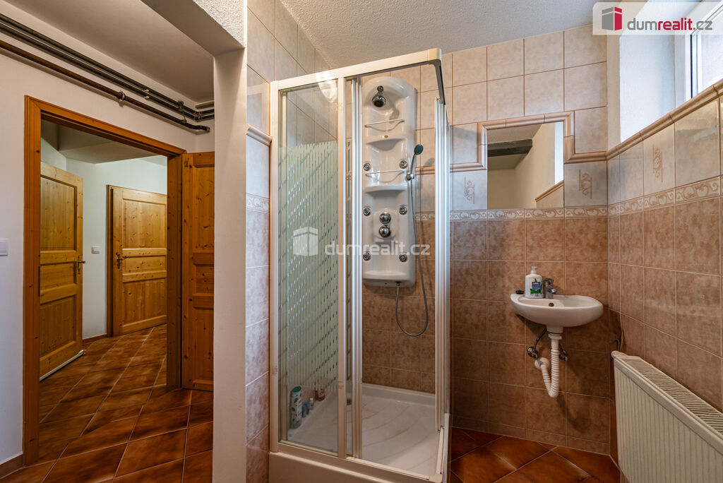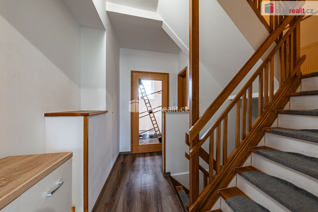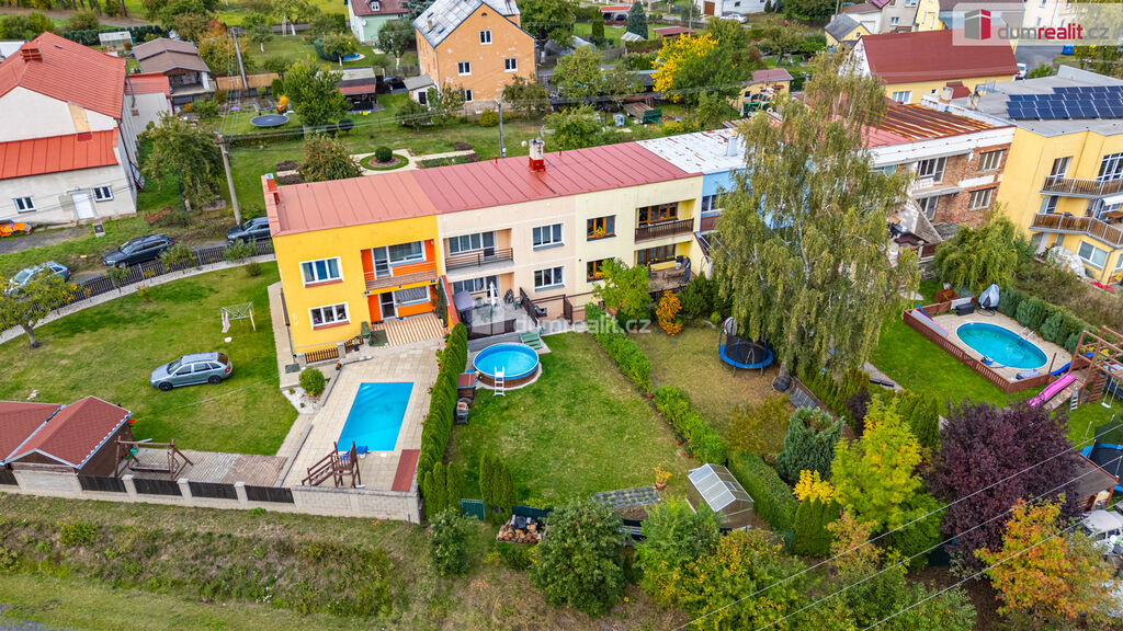 Dumrealit.cz Vám zprostředkuje koupi pěkného řadového domu s garáží, parkovacím místem, sklepem, terasou a zahradou v Hazlově u Chebu. Kvalitní cihlový dům z roku 1980 o třech podlažích obklopuje pozemek o celkové rozloze 335 m² a má celkovou užitnou plochu cca 220 m². Dům nabízí dispozici 5+1 s tím, že v přízemí se nachází prostorný obývací pokoj navazující přes jídelní kout na samostatnou kuchyni se zánovní kuchyňskou linkou, dále je zde předsíň, chodba a toaleta. Z jídelního koutu je výstup na terasu a dále na útulnou zahradu s bazénem. V prvním patře jsou tři prostorné ložnice, balkon, velká koupelna s vanou, sprchou, samostatná toaleta. V suterénu je další plnohodnotný pokoj, technická místnost, kde je umístěný kotel, dílna, garáž, sklad, komora, úložný prostor pod schody, sprcha, toaleta, plus příprava na pračku. Dům prošel postupně kompletní rekonstrukcí, suterén je absolutně suchý a odizolovaný. V rámci rekonstrukce je v celém domě nová elektroinstalace, vodoinstalace, odpady, rozvody topení. Nové jsou také podlahy, omítky, štuky, plastová okna a je nová střecha. Budova je zateplená zepředu i ze zadní strany. Cihlový dům vytápí kondenzační plynový kotel (4 roky starý) se zásobníkem na teplou vodu, komín byl nově vyvložkovaný. Dům je napojen na všechny inženýrské sítě včetně kanalizace, vody, elektřiny a plynu. Co se parkování týče, je k dispozici velká vytápěná garáž (s dílnou), další dvě parkovací místa jsou garantovaná na ulici před domem a další auto (menší i dvě) mohou parkovat na příjezdové cestě. Zahrada je přístupná i ze zadní části pozemku, sousedské vztahy jsou nadstandardní a velmi pozitivní. Dům se nachází v obci blízké Chebu (10 minut jízdy), kde je veškerá občanská vybavenost a dostatek pracovních příležitostí, přesto i v Hazlově je škola, školka, úřad, pošta, potraviny a dvě restaurace. Dům je ideální svou polohou pro ty, kteří dojíždějí do Německa či zde teprve hledají pracovní uplatnění. Nemovitost je umístěna v příjemné ulici a nabízí kombinaci moderního bydlení a klidného prostředí, je zde dostatek úložného prostoru a klid pro každého člena rodiny. Cena zahrnuje veškeré právní služby a provizi RK. V případě zájmu Vám rádi doporučíme naše prověřené hypoteční poradce. Ev. číslo: 652638.