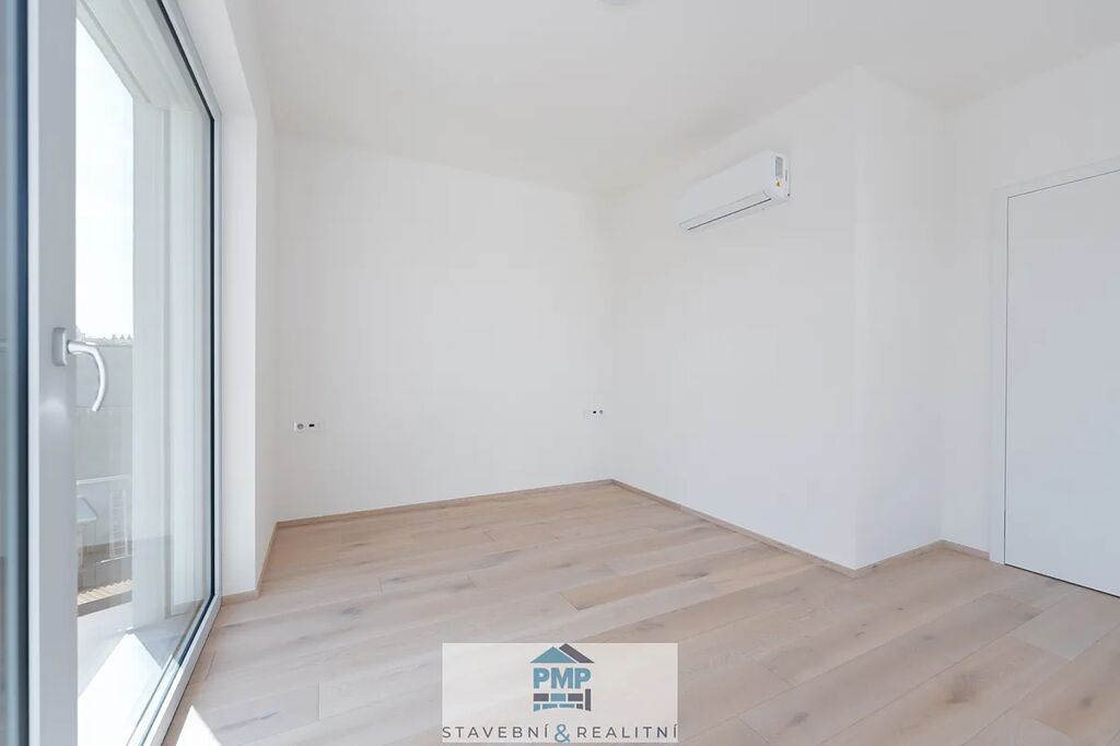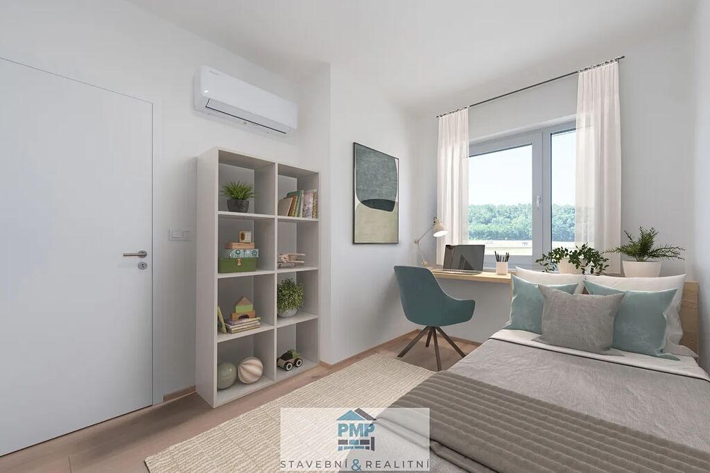 Byt je vybaven klimatizací v každé obytné místnosti, která zajistí příjemné prostředí i v horkých letních dnech. O vytápění a ohřev vody se stará centrální tepelné čerpadlo NIBE vzduch–voda, které je napojeno na podlahové teplovodní vytápění. Moderní standard doplňují dubové lepené podlahy, hliníková okna s izolačním trojsklem a venkovní žaluzie na elektrický pohon. Samozřejmostí je centrální vysavač, příprava na fotovoltaickou elektrárnu a využívání dešťové vody, stejně jako garáž s přípojkou pro wallbox a příprava na optický internet. Tento byt tak nabízí nejen útulné bydlení, ale i technickou připravenost pro budoucnost.