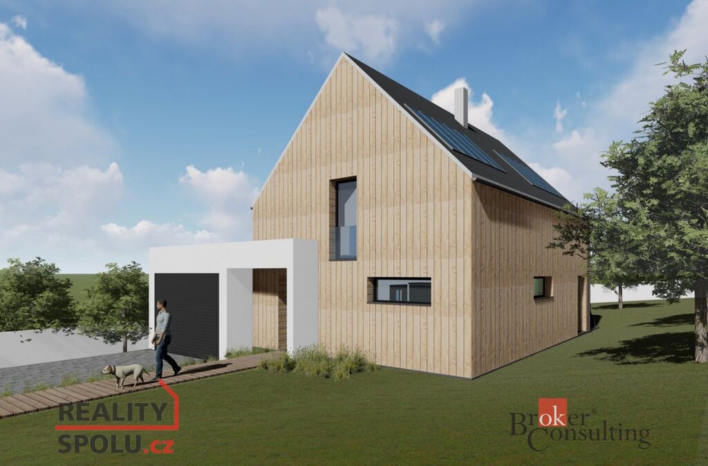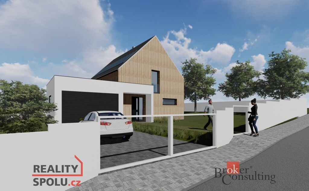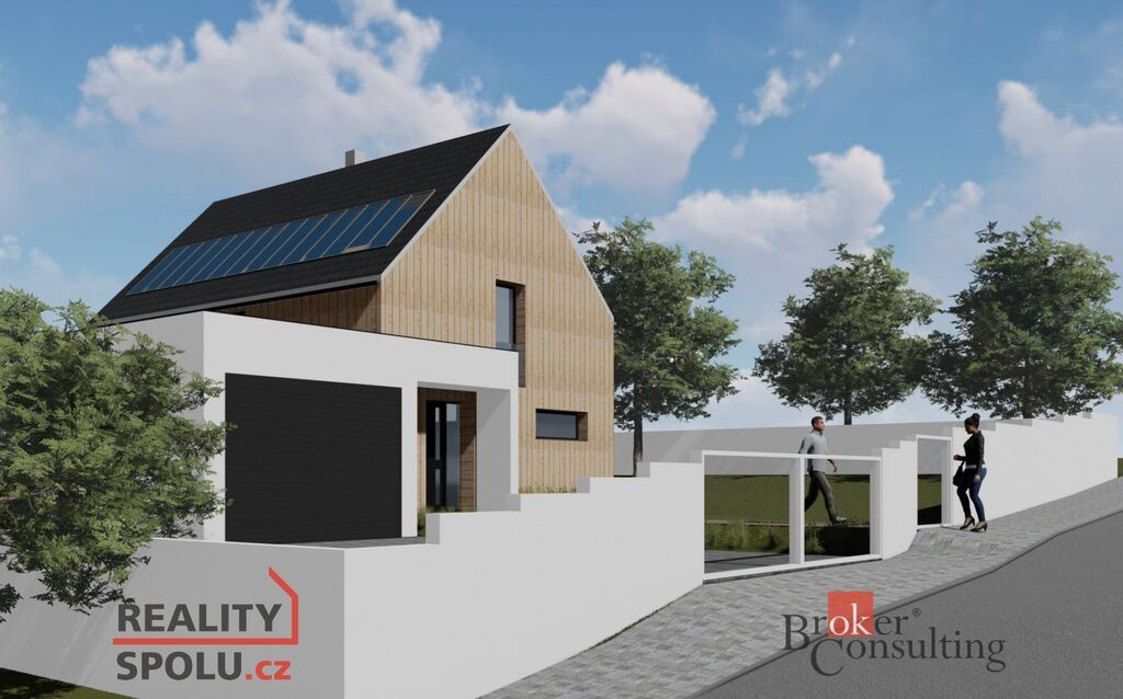 Součástí prodeje je platné stavební povolení na výstavbu rodinného domu. Vizualizace jsou k nahlédnutí ve fotogalerii.