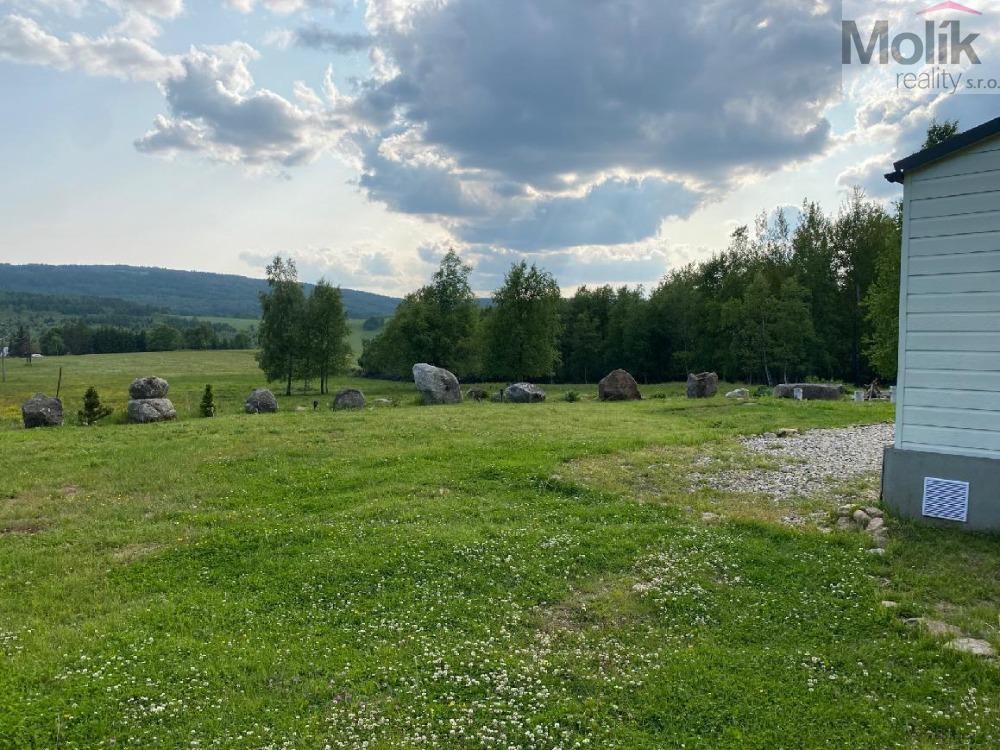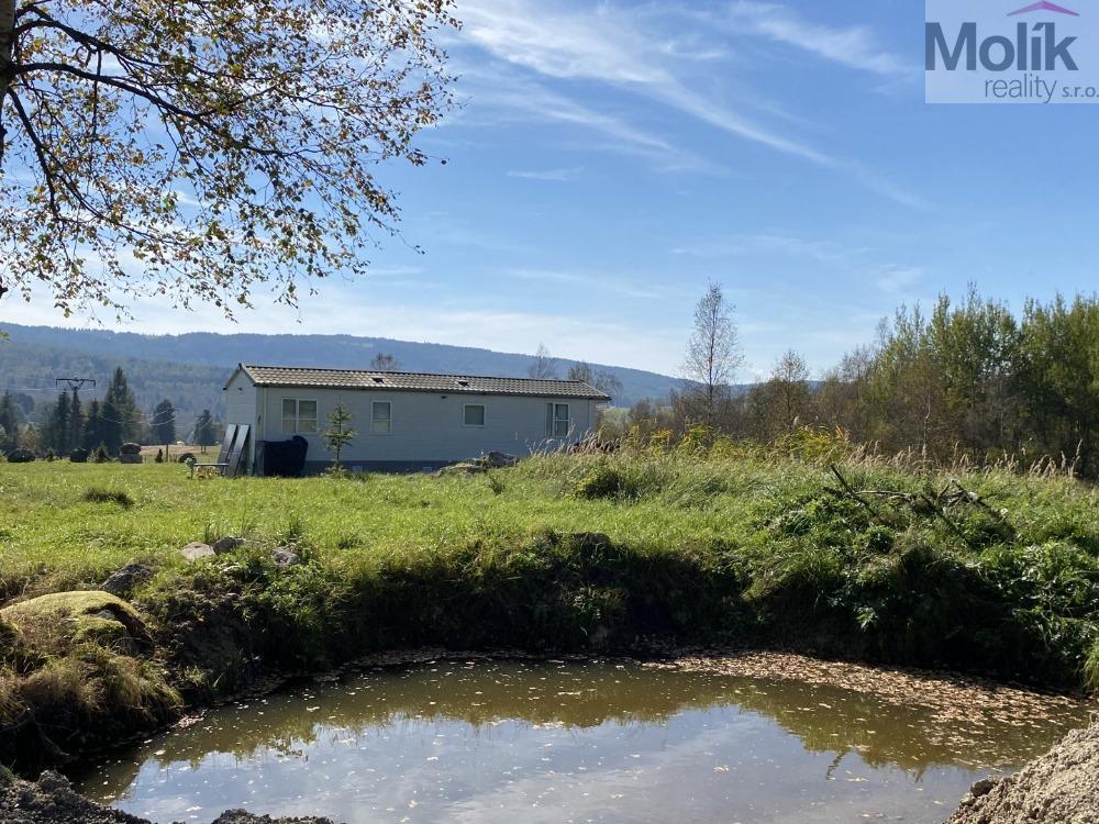 Prodej pozemku o velikosti 7960 m s mobilheimem. Na pozemku je zavedena elektřina a užitková voda ze studánky. Součástí je také romantické jezírko, ideální pro relaxaci a posezení u vody. Mobilheim o rozloze 48 m nabízí komfortní ubytování o dispozici 3+1, je zateplený a umožňuje tak celoroční využívání. Uvnitř najdete vytápění na plyn spolu s klimatizací a infra obrazy, což zajišťuje příjemnou atmosféru po celý rok. Odpad je napojen na jímku. Stavba je stará 8 let, dovezená z Anglie.