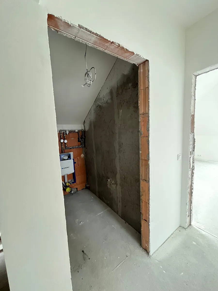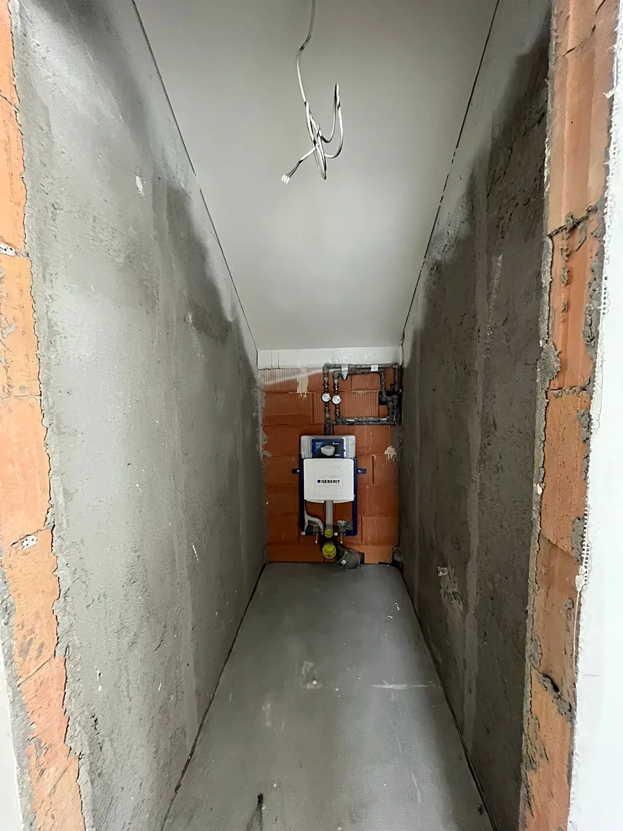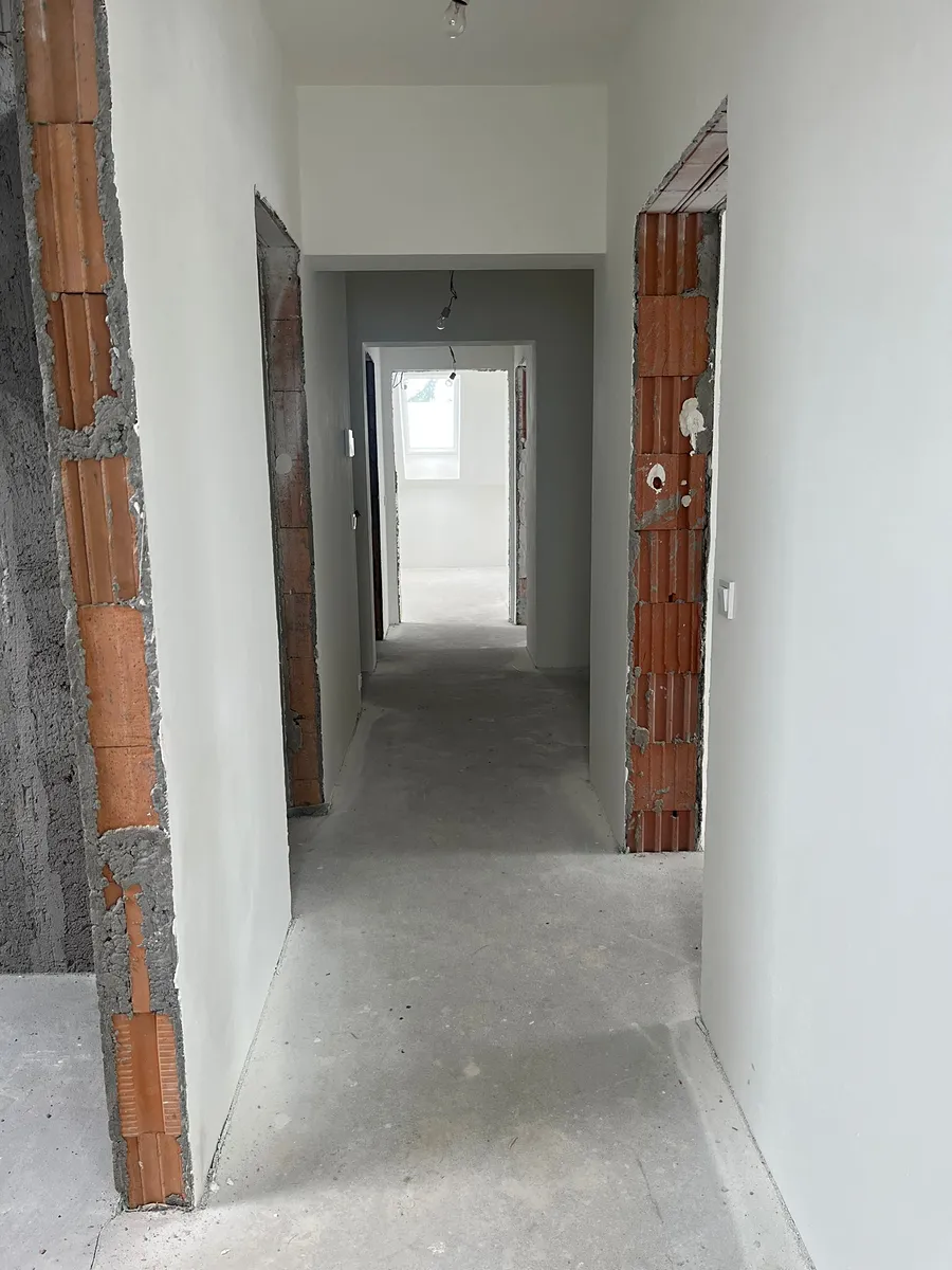 Jednotka je ve stavu před dokončením (podlahová krytina, koupelny, dveře).