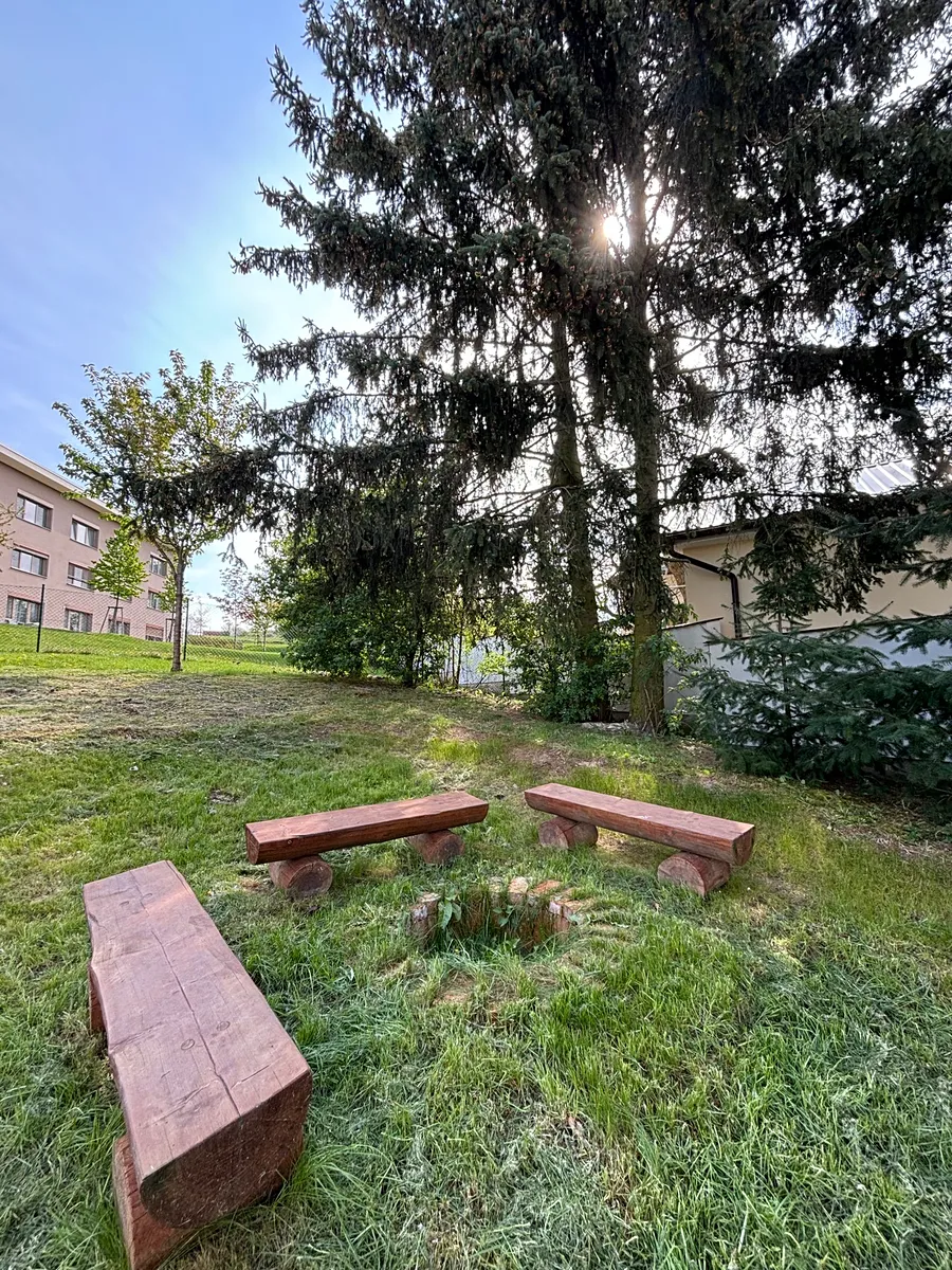 Ohřev vody zajišťuje centrální bojler, který je dohříván společnými solárními panely ze střechy.