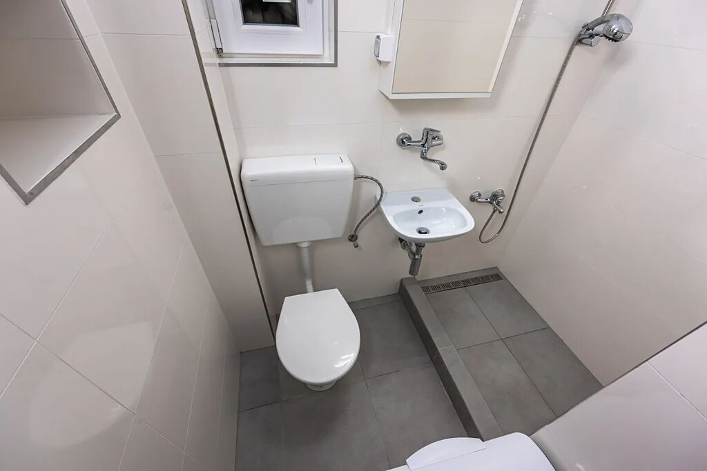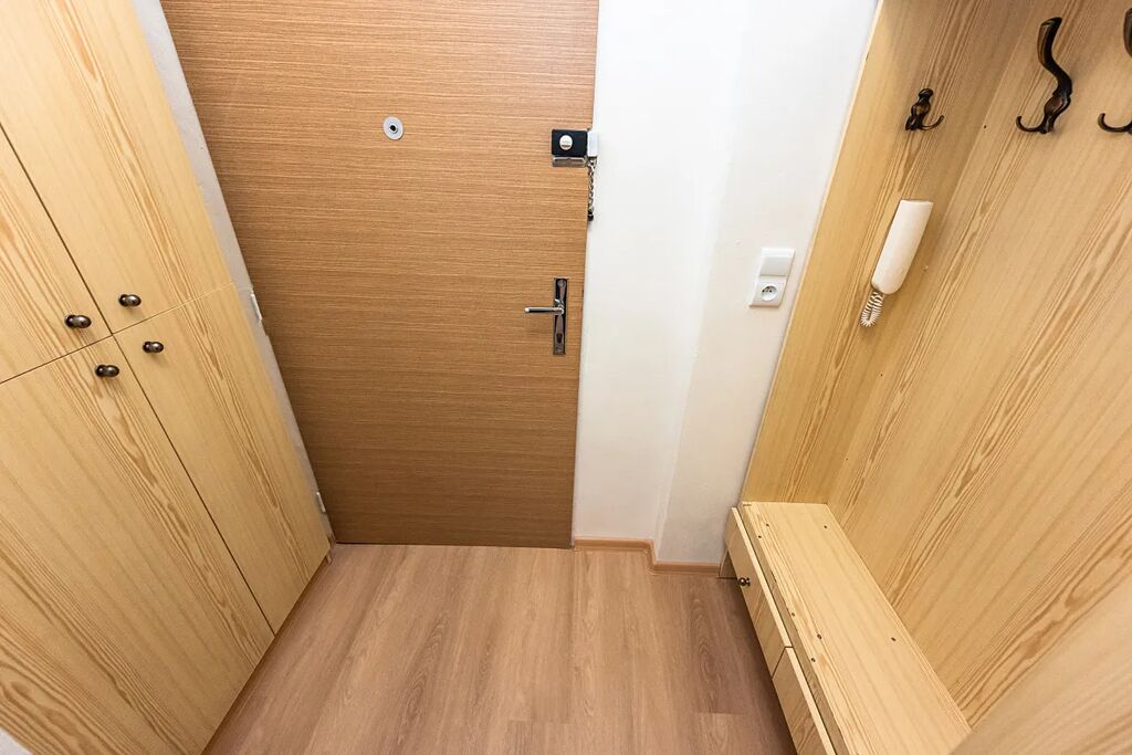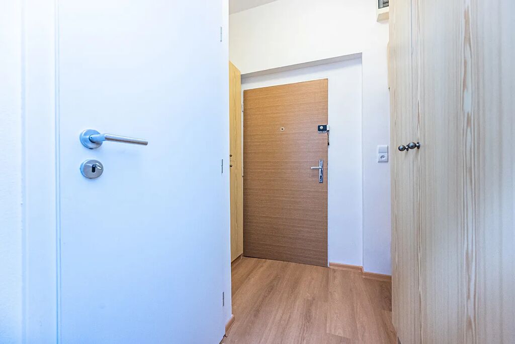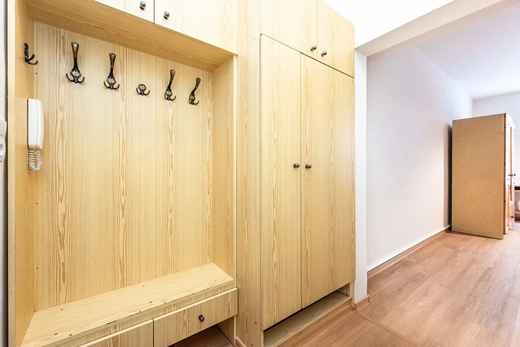 V prostorné vstupní chodbě je umístěna šatní skříň, věšák a botník. V koupelně se sprchovým koutem a toaletou je k dispozici také pračka.