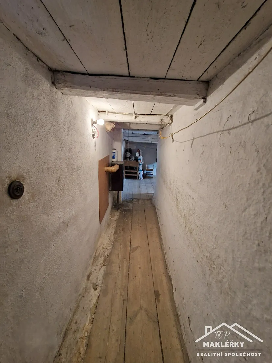 Nabízím Vám k prodeji řadový dům s půdním prostorem 20 m2 + komora na půdě 15 m2 ( nižší strop) s dispozicí 2+1 o užitné ploše 50m2, na dvoře se nachází vedlejší stavba: dílna o výměře 15m² a zděný sklep 7 m². Celková výměra zastavěné plochy a nádvoří 146 m2. Dále zahrádka( svahovitá) oddělená plechovým plotem a dveřmi 255m2, kde v zadní části zahrádky se nachází vrata. ( Možnost parkování).