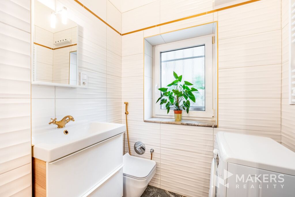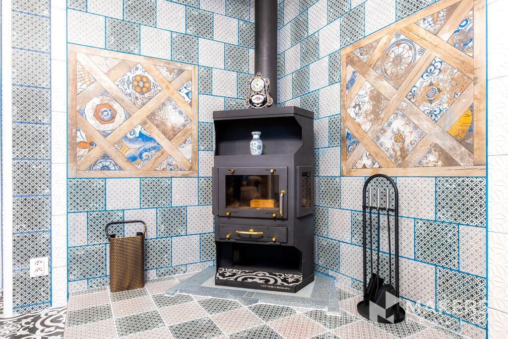 V obývacím pokoji je dominantou krb na dřevo, doplněný moderním vytápěním pomocí kondenzačního plynového kotle. Okna jsou vybavena dvojskly, sítěmi proti hmyzu a dekorativními mřížemi, čímž spojují bezpečí s estetickou hodnotou historického domu. Podlahy jsou kombinované: keramická dlažba a podlahy z přírodního dřevěného laminátu, dodávající interiéru vyvážený kontrast tepla a praktičnosti.