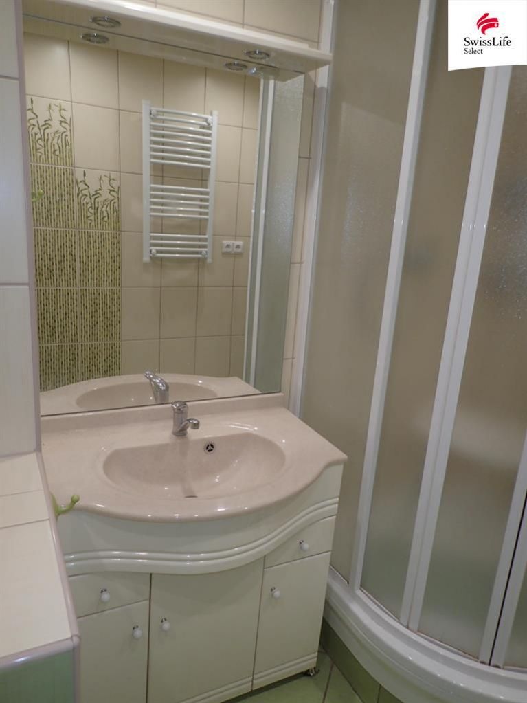 Bytová jednotka je ve velmi dobrém stavu. Byt se skládá z předsíně, kuchyně a čtyř pokojů, z nichž jeden má přístup na lodžii a zároveň schodiště do přízemní místnosti. Zděná koupelna je vybavena sprchovým koutem, umyvadlem a společným WC.