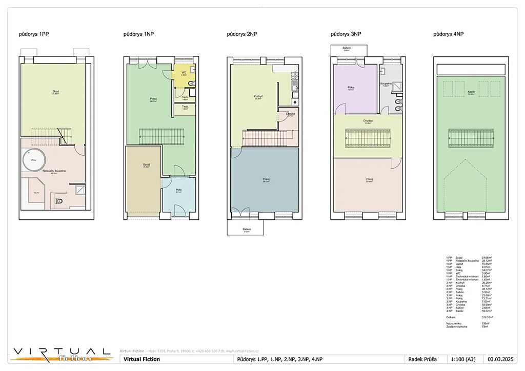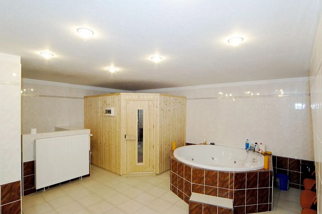 Suterén (1PP): místnost sloužící doposud jako sklad (32m²) a prostorné wellness s vířivkou, saunou a toaletou (28m²).
