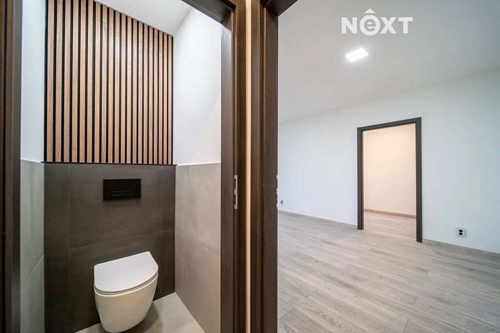 V rámci rekonstrukce se podařilo razantně zvětšit i koupelnu a žádné stísněné prostory vás tedy nečekají.