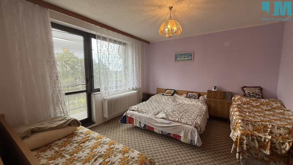 Rád Vám zprostředkuji prodej velkého rodinného domu s garáží, stodolou a pozemkem o rozloze 6 522 m² v obci Rudíkov, která se nachází mezi Třebíčí a Velkým Meziříčím. Dům je celo podsklepený s prostornou garáží a dílnou. V přízemí domu naleznete dva samostatné pokoje (jeden pokoj s velkým balkónem), koupelnu se sprchovým koutem, samostatnou toaletu a kuchyň se spíží. Z kuchyně je vstup na terasu a zahradu. V druhém patře naleznete čtyři samostatné pokoje (dva pokoje s velkým balkónem) a koupelnu s vanou a toaletou. V dalším patře je prostorná půda, která lze případně využít k výstavbě dalších pokojů. Za domem je obrovská zahrada s bazénem a velkou stodolou. Před domem jsou další samostatné místnosti z nichž jedna budova slouží jako udírna.