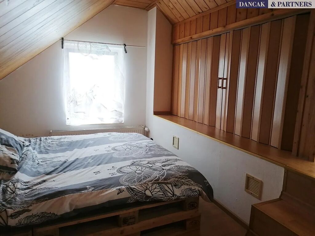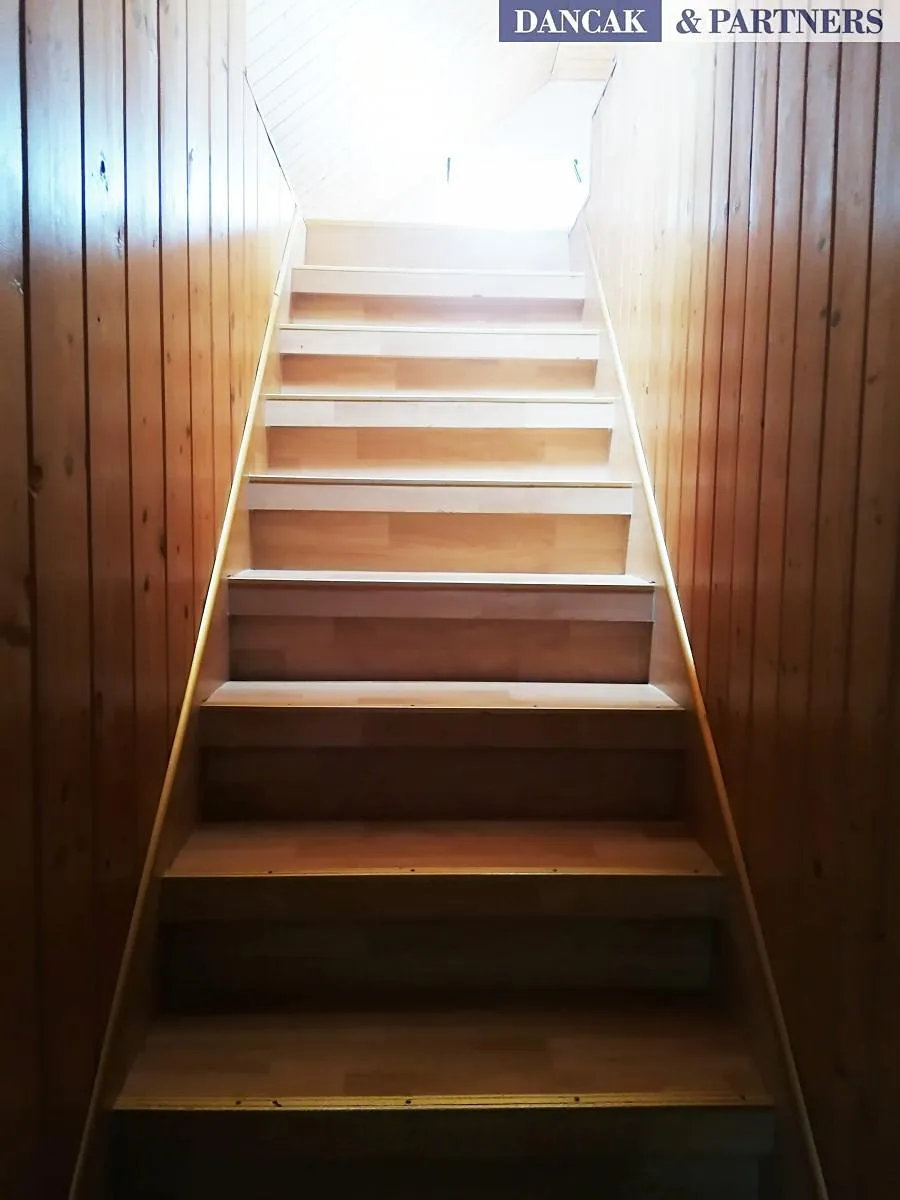 Z chodby je vstup na schodiště vedoucí do podkroví, jež nabízí k využití další místnost, kterou je možno využít jako pokoj pro hosty, z té je přímý vstup na střešní terasu ideální pro letní posezení i grilování.