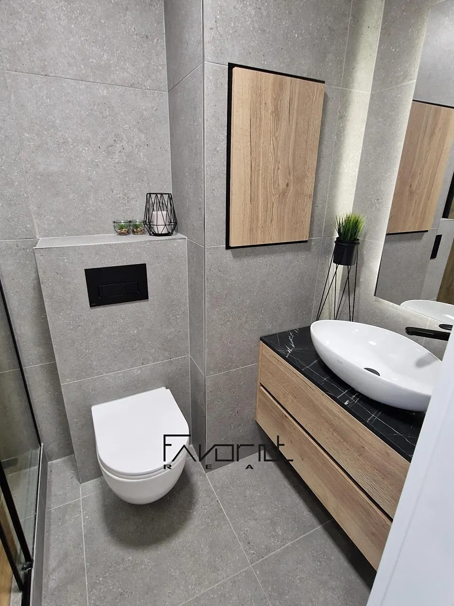 Nivelace podlah před položením plovoucí podlahy (srovnání). Na podlahách jsou zátěžové plovoucí podlahy. Nové interiérové a vstupní dveře včetně obložek, vypínače a zásuvky. Nové kvalitní omítky.