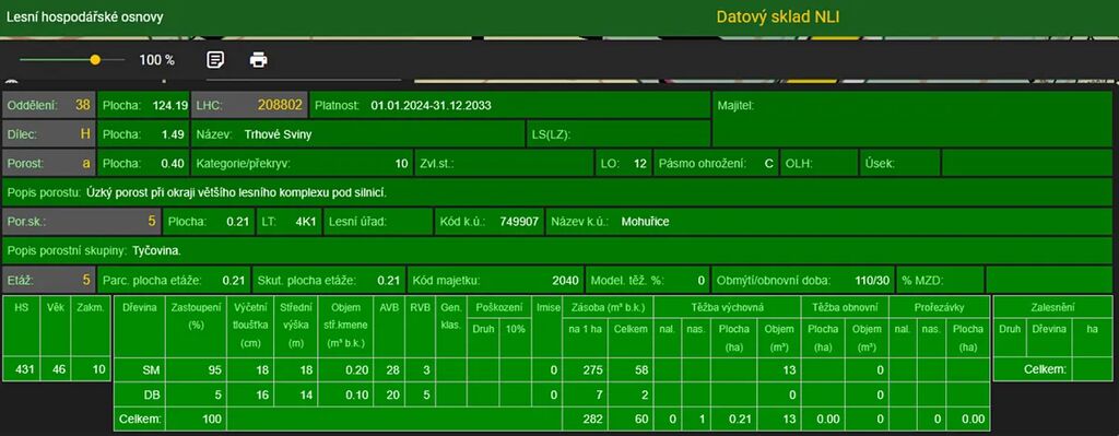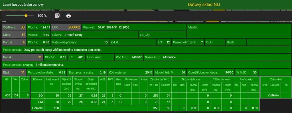 Stáří lesa a LHO viz. foto.