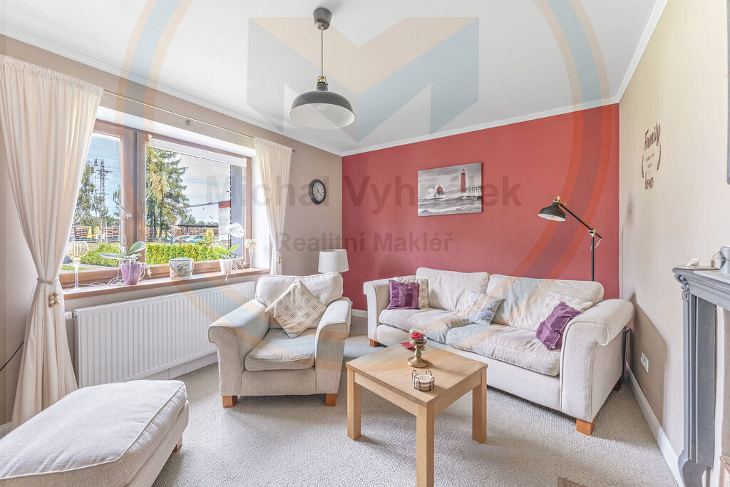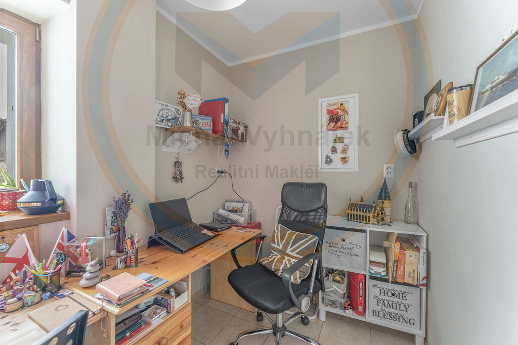 Dále se zde nachází obývací pokoj s krbovou vložkou, další pokoj využívaný jako pracovna a technická místnost, samostatné WC a koupelna s vanou.