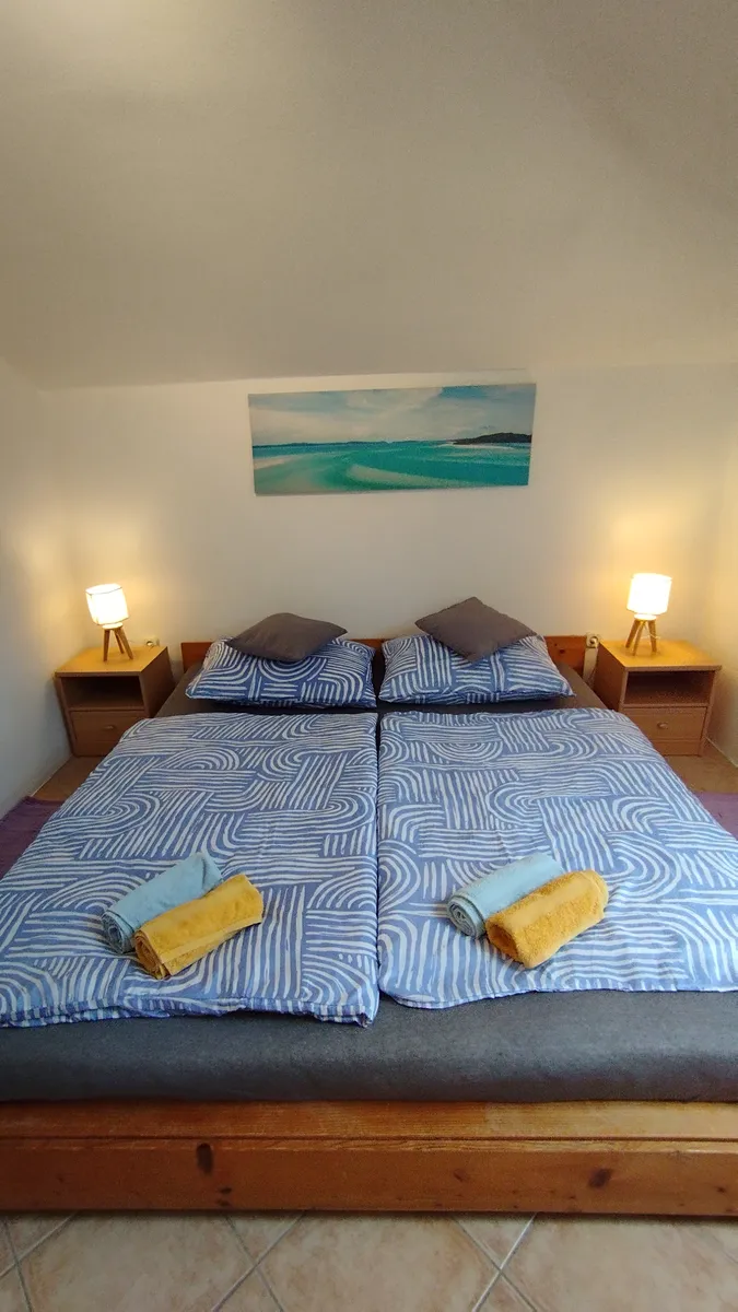 Skládá se z: předsíně, obývacího pokoje propojeného s kuchyní a jídelnou, dvou ložnic, koupelny s toaletou a vnitřního schodiště vedoucího do druhého zcela samostatného podlaží, kde je další ložnice se střešními okny.