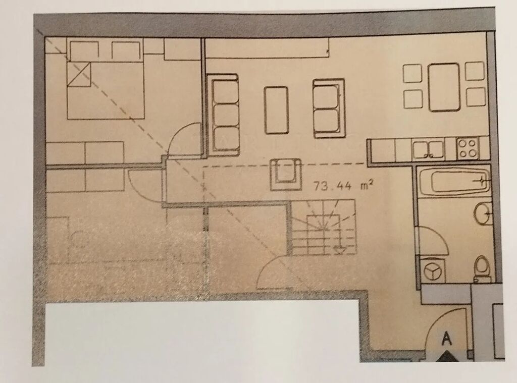 Byt je užitné plochy 99 m2, rozprostírá se ve 2 podlažích, první část je v 3.patře a druhá část vede vnitřním schodištěm do podkrovní části, kde se nachází 3. ložnice a úložný prostor.
