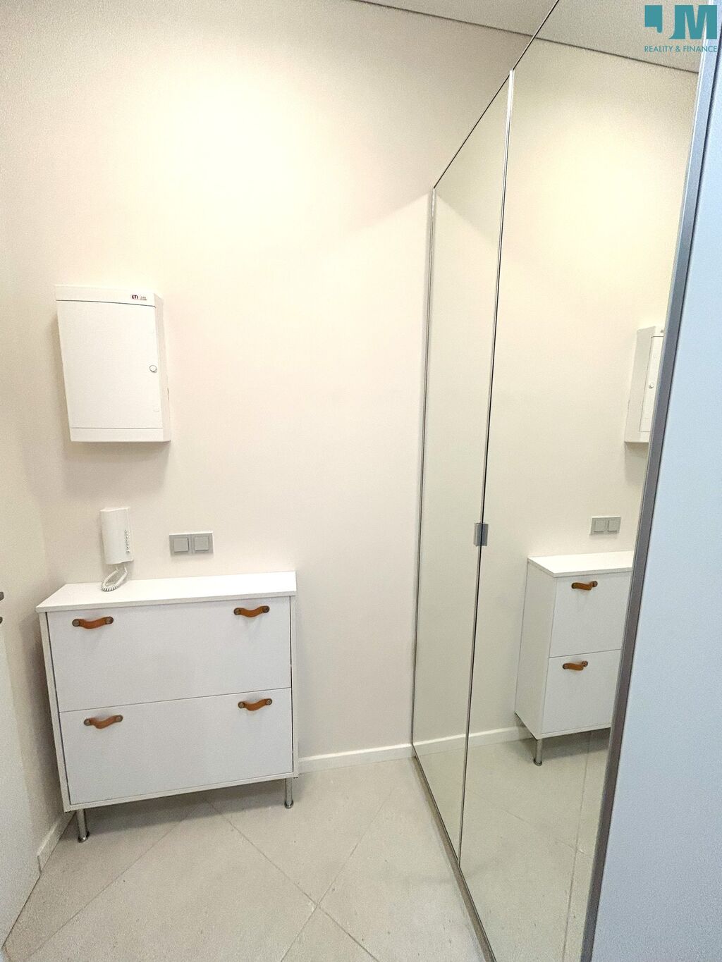 plně vybavená kuchyňská linka: lednice, mikrovlnná trouba, indukční deska, pračka (bude součástí pronájmu), pečicí trouba a myčka,