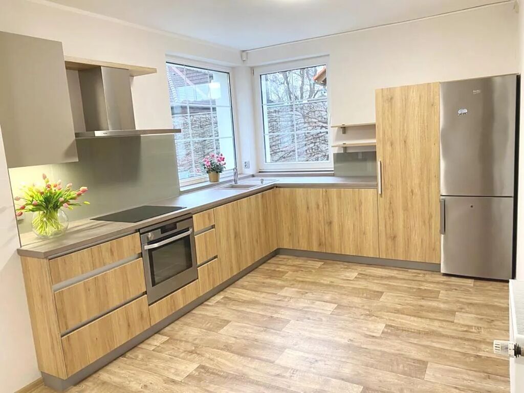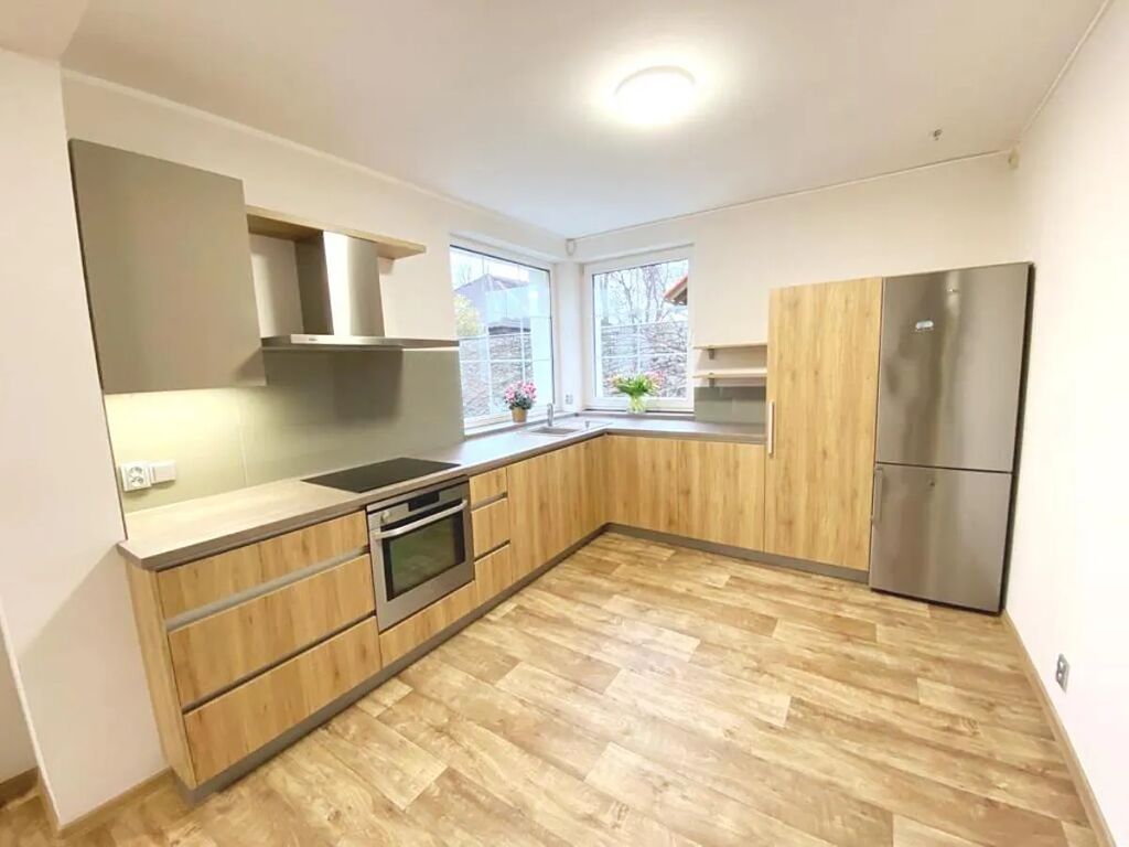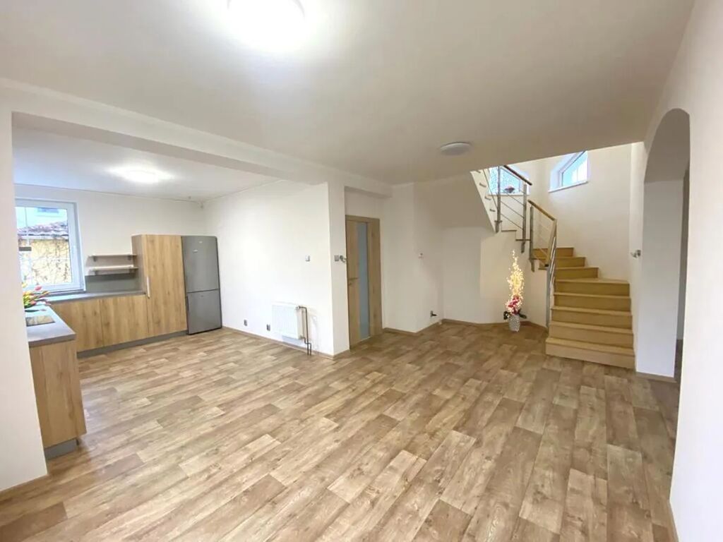 Nabízíme k pronájmu samost. stojící pěkný RD o velikosti 5+kk/T/Z + garáž, 184m2. Dům prošel kompletní rekonstrukcí interiéru (nová moderní kuch. linka včetně spotřebičů, podlahy, schodiště, dveře). Dům se nachází v klidné lokalitě v zástavbě rodinných domů. Dispozice: 1NP - obývák s kuch. koutem, toaleta a elektrický kotel a tepelné čerpadlo, 2NP: tři neprůchozí pokoje, pracovna, koupelna s rohovou vanou a toaletou, komora. Dům je vybaven kuch. linkou se spotřebiči, v ložnici vestav. šatní skříň, na podlaze v pokojích koberce, ostatní kvalitní linoleum v dekoru dřeva, dřevěné schodiště. Dobrá dostupnost - 5 min bus zastávka na metro Budějovická. Alarmové zabezpečení. Nájem 36tis., záloha na poplatky 7tis., Kauce ve výši dvou měsíčních nájmů. Provize RK ve výši jednoho nájmu plus 21%DPH. K nastěhování ihned.