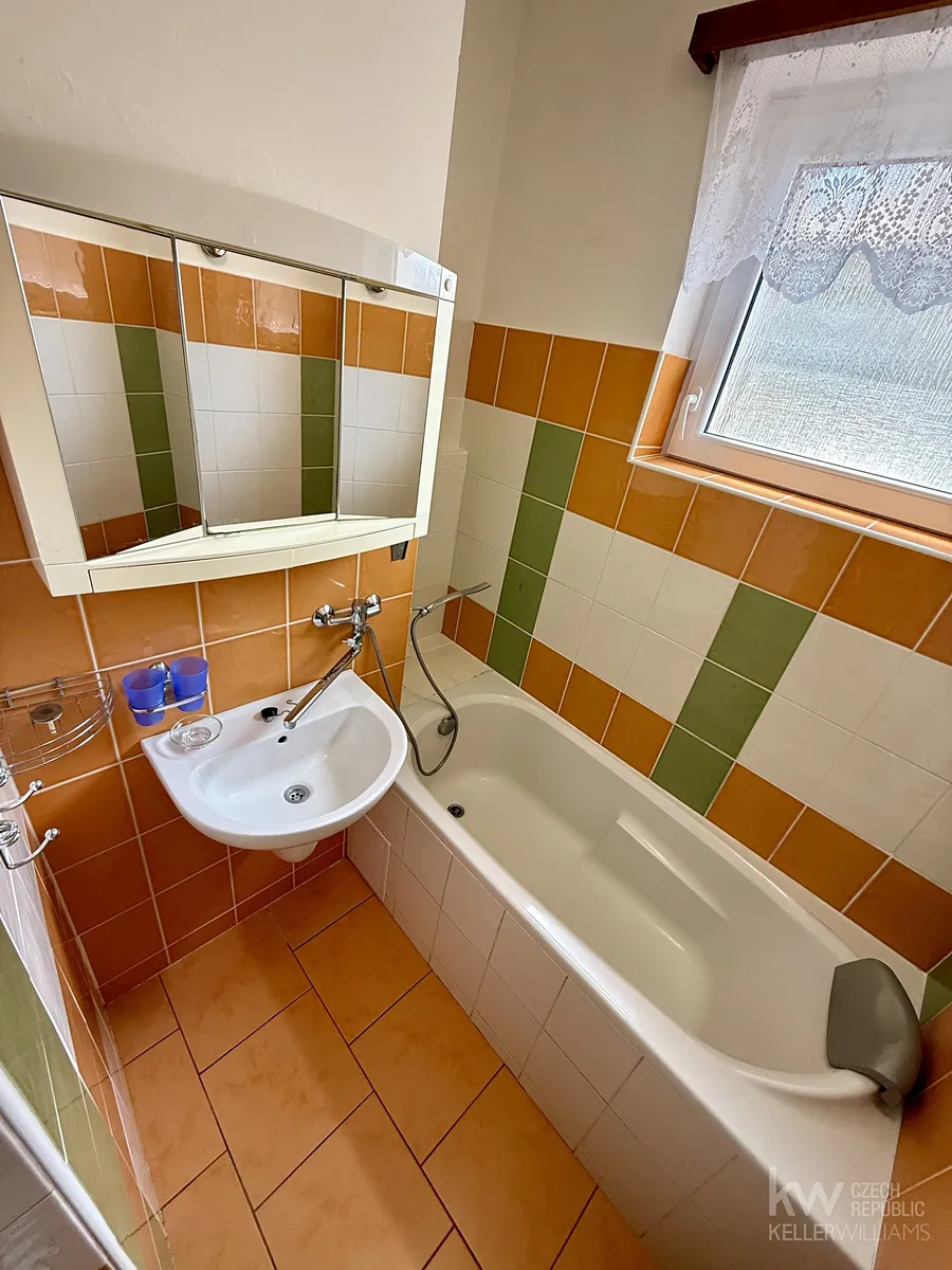Topení zajišťuje plynový kotel, ohřev vody el. bojler.
