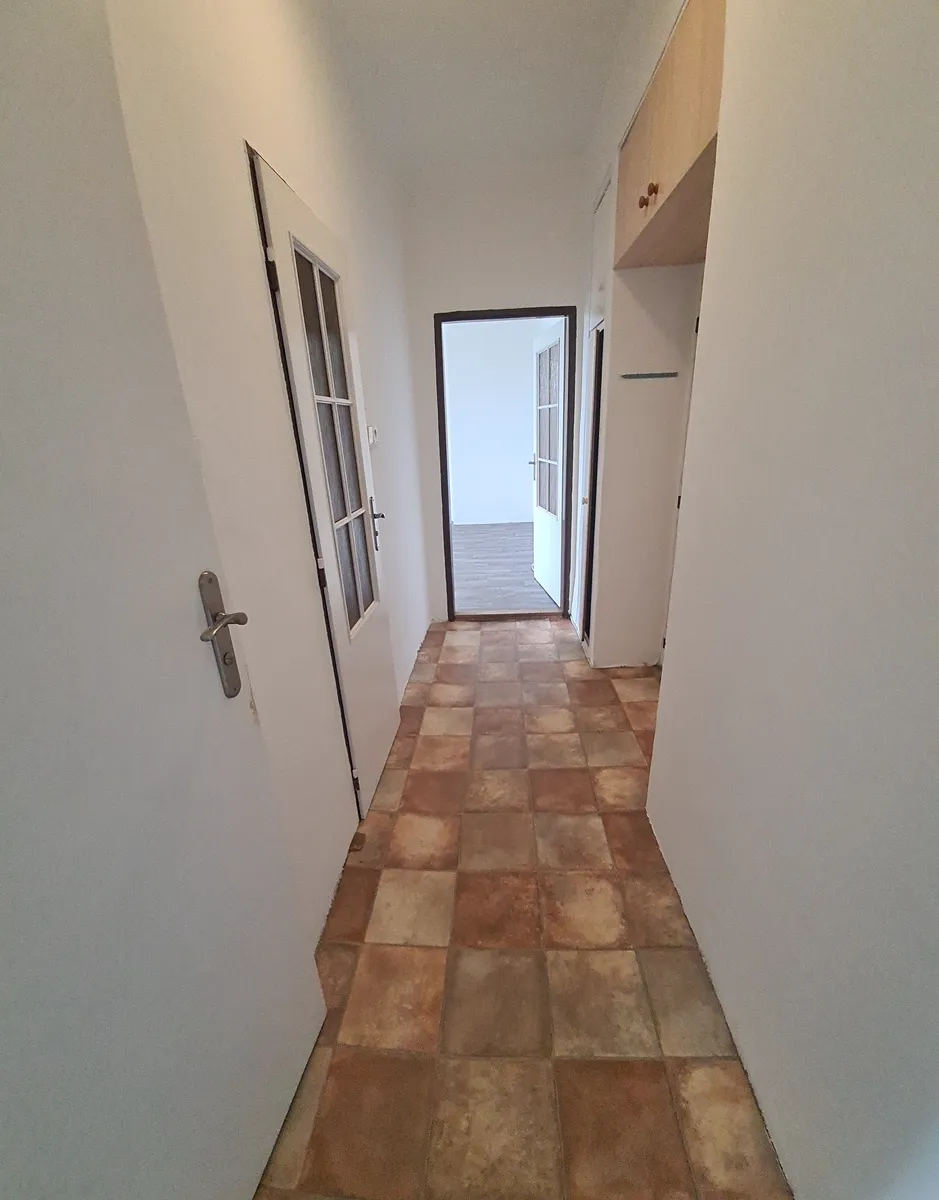 Byt po rekonstrukci, situovaný ve 3.patře zrenovovaného domu, v klidné části pražského Hloubětín, v pěší dostupnosti stanice metra B Hloubětín. Byt sestává z předsíně, koupelny s vanou, samostatného WC, ložnice a obývacího pokoje propojeného s kuchyní. Vybaven je kuchyňskou linkou s vestavěnou varnou deskou, elektrickou troubou, lednicí a myčkou. K bytu přísluší sklep. Možnost užívat balkón, který je přístupný z chodby domu. Klidné prostředí, dobré spojení do centra metrem i tramvají.