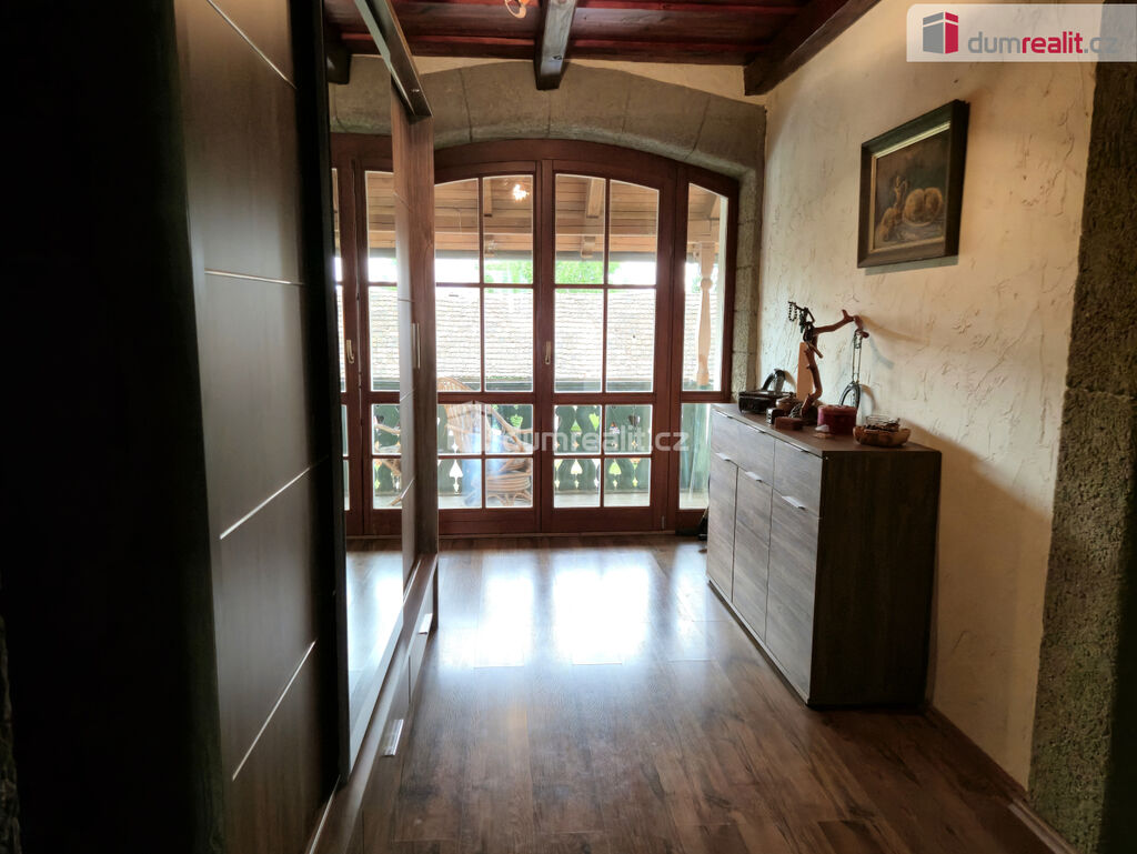 Částečně podsklepený dvoupodlažní dům nabízí v prvním patře prostorný, designově osobitý byt 4+1, kdy tři ze čtyř pokojů jsou neprůchozí a ložnice je napojena otevřeným průchodem na obývák s dekorací z kamene. V koupelně je vana, umyvadlo WC a prostor na pračku. Z centrální chodby je průchod prosklenou stěnou na verandu, ze které je skvělý přehled o dění na zahradě. Dále v podkroví započatou vestavbu, potom zahradu, stodolu a garáž.
