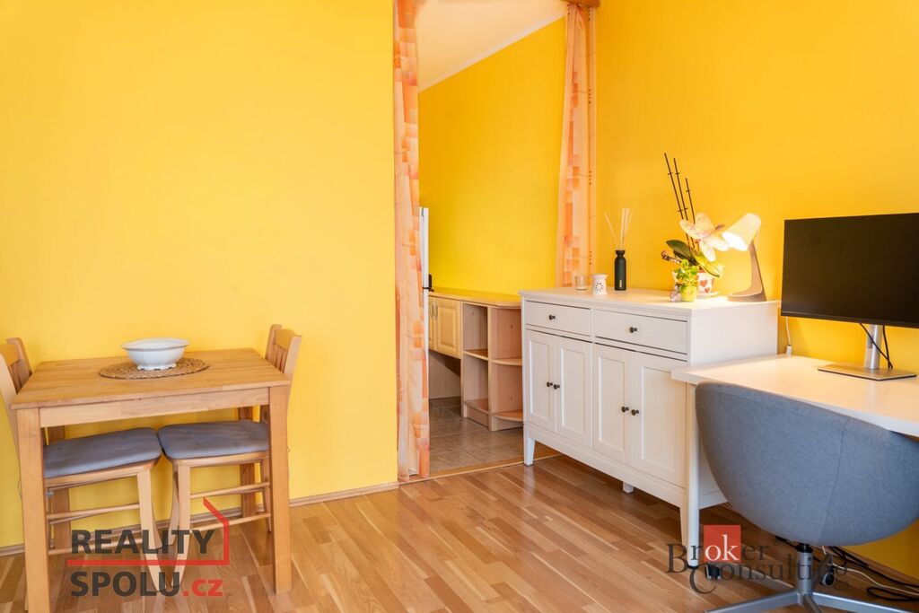 Byt se skládá ze světlého obývacího pokoje s kuchyňským koutem a přímým vstupem na lodžii, samostatné ložnice, koupelny s vanou a oddělené toalety. Praktické uspořádání nabízí dostatek prostoru pro pohodlné bydlení jednotlivce či páru.
