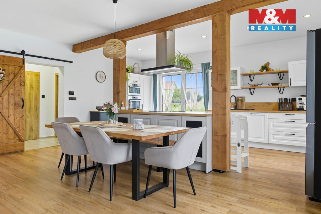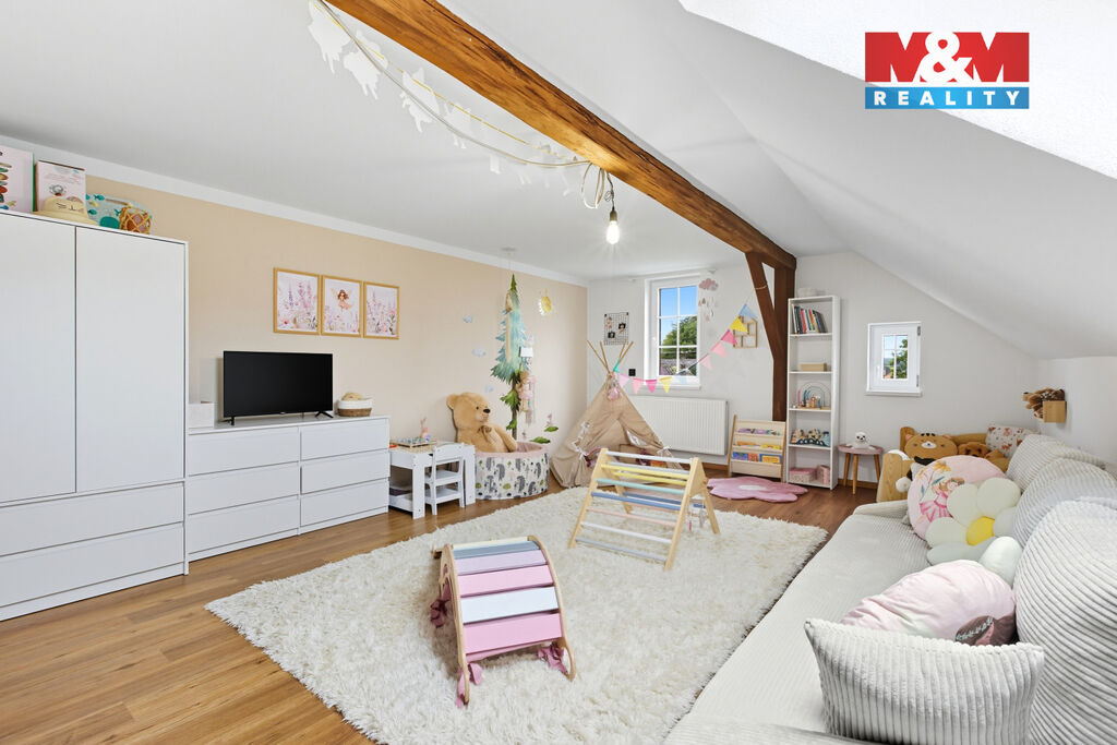 Na prodej prostorný a světlý rodinný dům 3+kk ve velmi klidné obci Olbramov u Černošína. Dům prošel kvalitní rekonstrukcí, má dvě koupelny, sklep, novou kuchyňskou linku a úsporný kotel na tuhá paliva splňující normy EU. Voda je z vlastní vrtané studny, což výrazně snižuje náklady. V 1. NP podlahové vytápění, ve 2. NP nová topná tělesa. Půdní vestavba nabízí další využití. K domu patří velký dvůr, stodola s možností vytvoření garáže a půdní prostory třeba pro letní byt. Z jedné strany je užitková zahrada, z druhé okrasná část s terasou a vstupem do kuchyně. Obec je tichá a přátelská, s dětským hřištěm, rybníky a místní hospůdkou. V okolí jsou krásné procházky a široké možnosti zájmových kroužků a aktivit pro děti. Kompletní občanská vybavenost je vzdálená cca 3 km od domu, škola, školka, obchody. Dům a lokalita je ideální místo pro rodinu, která hledá klid pro bydlení, prostor a další možnost seberealizace. Další info u makléře.