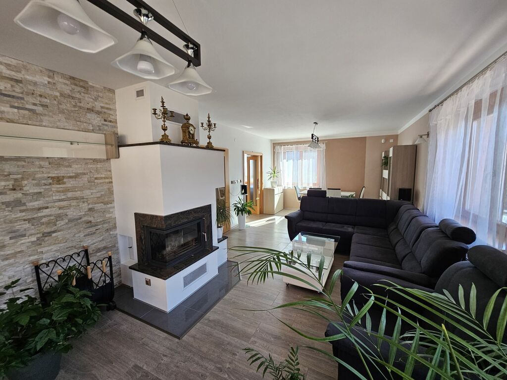 Komfort: Klimatizace v obývacím pokoji, dálkově ovládané brány a vrata.