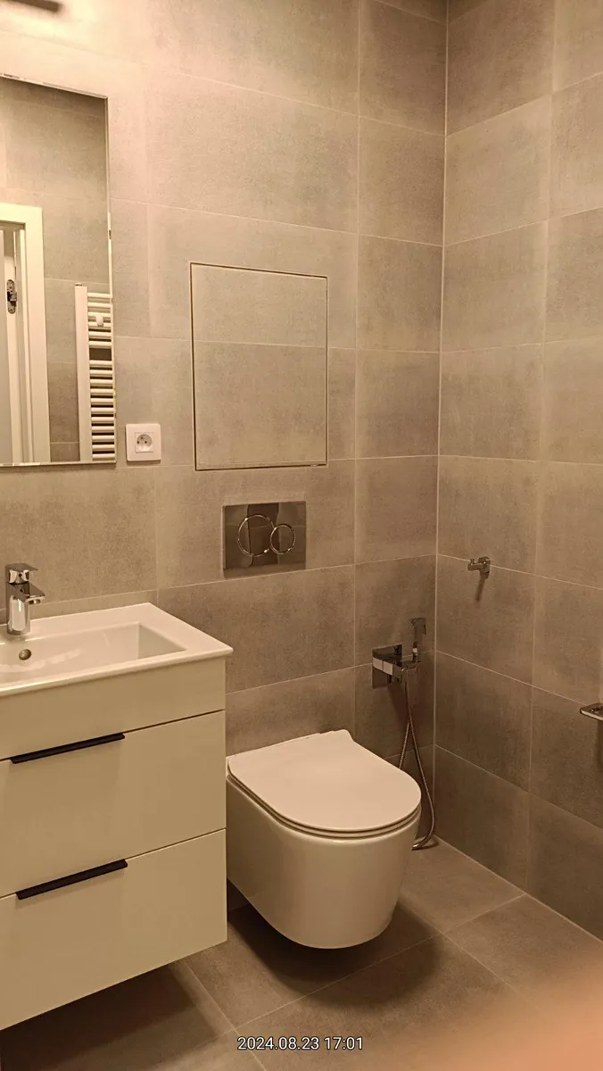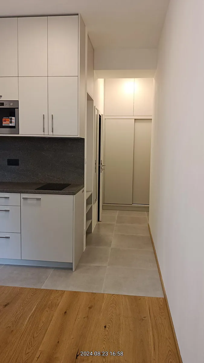 V bytě je kuchyňská linka se spotřebiči, koupelna se sprchovým koutem a toaletou. Výhled do vnitrobloku. V domě je k dispozici společná prádelna.