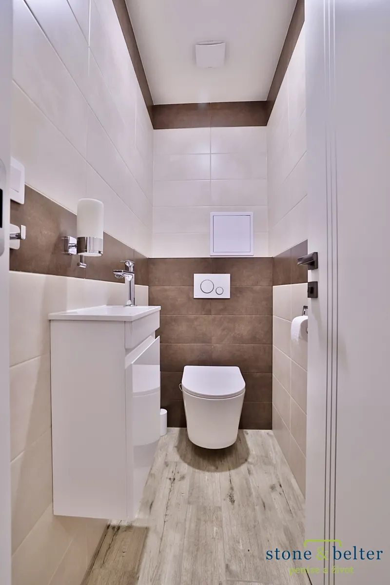 • Dvě komfortní koupelny – jedna s vanou pro relaxační chvíle a toaletou , druhá se sprchovým koutem. Navíc je k dispozici oddělené WC.