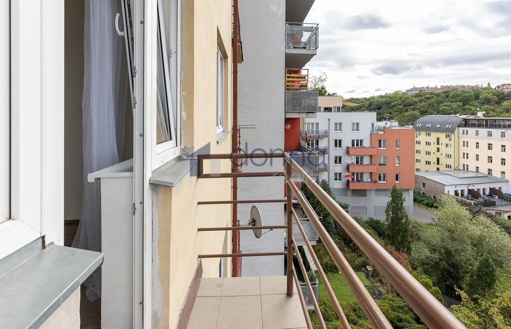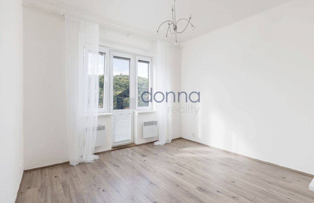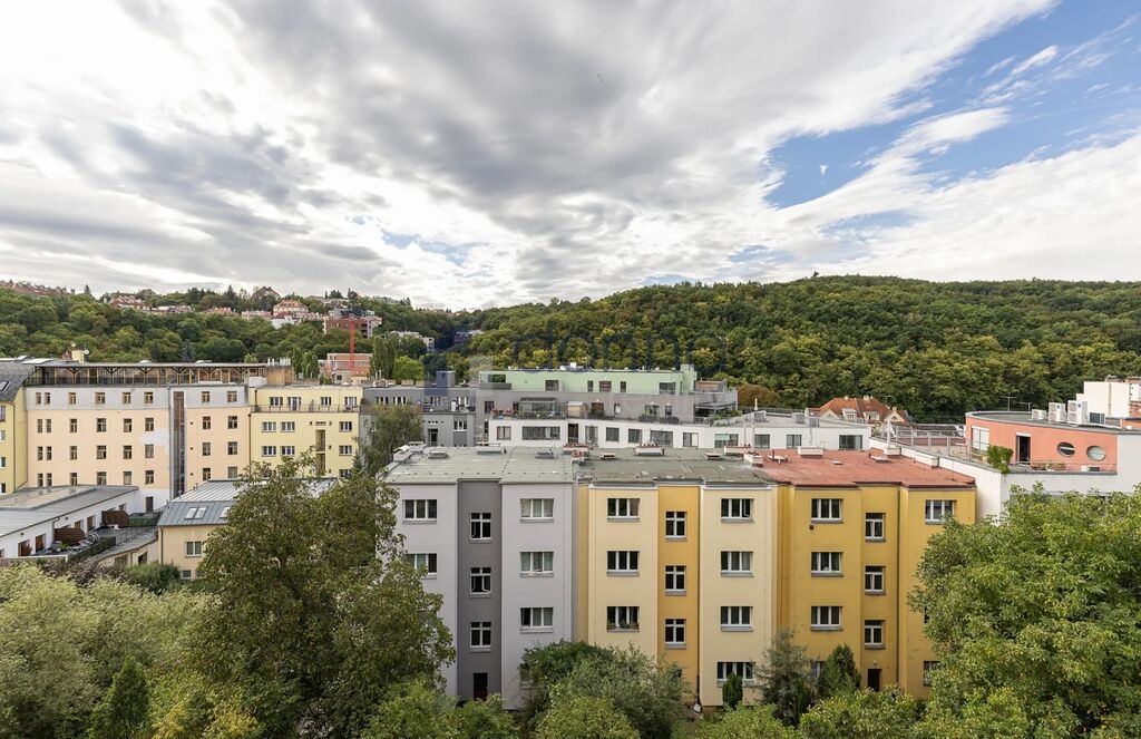 Velká okna orientovaná do vnitrobloku zajišťují dostatek denního světla a byt tak působí útulně a vzdušně. Z okna výhled na Bertramku.