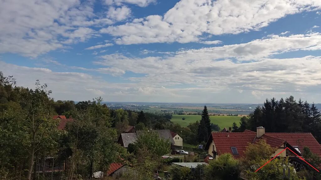 Jedná se o pozemek, který je svým umístěním velice zajímavý i jako výhodná investice. Předností je, že se nachází na svahu a má krásný výhled na okolní krajinu (viz.foto). Vzhledem k tomu, že je ze 3 stran obklopen rodinnými domy a z jedné strany úzkou komunikací a díky tomu se u pozemku (na jeho hranici) nachází inženýrské sítě: elektřina, plyn, obecní vodovod a kanalizace. Nyní lze pozemek užívat na chataření, rekreaci a zahradničení. V současné době probíhá řízení o změně ÚP a do budoucna, i přesto, že je nyní vedený na katastru jako zahrada, je dobře využitelný pro postavení chaty a ev. i pro trvalé bydlení, což by bylo i v zájmu obce.
