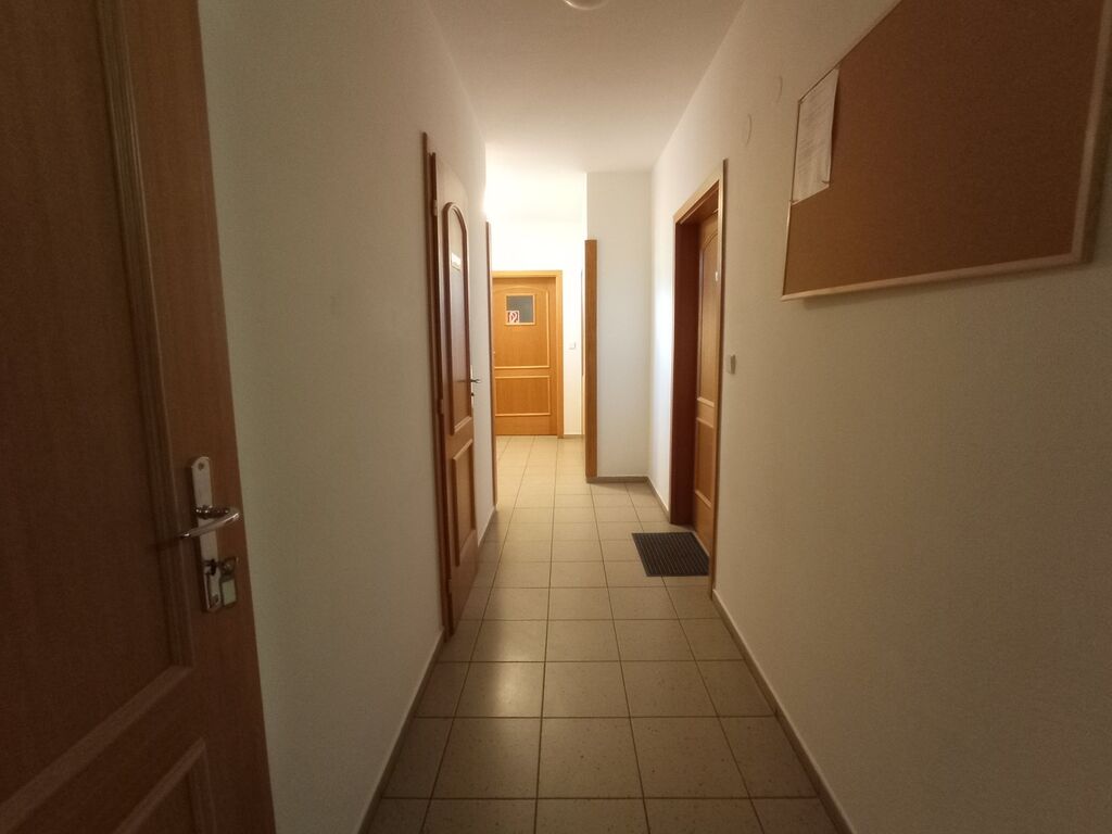 Ve výhradním zastoupení majitele nabízíme k prodeji nebytový prostor v historickém centru města Mikulova, který je vhodný k přebudování na komfortní bytovou jednotku. Předmětem nabídky je nebytový prostor o celkové výměře 79 m2, který se nachází ve druhém nadzemním podlaží polyfunkčního domu kolaudovaného v roce 2000. Nabízený prostor disponuje dvěma místnostmi o výměře 17,7 m2 a 18,8 m2, prostornou chodbou/čekárnou o výměře 20 m2, denní místností 10,2 m2, skladem 4,1 m2, místností rentgenu 6,7 m2, 2x WC a technickou místností. Všechna okna jsou orientována do dvora, což zajišťuje nerušené užívání jednotky, bez nadměrného hluku z ulice. Nemovitost, která po celou dobu své existence sloužila, jako ordinace dvou zubních lékařů, byla řádně udržována a nachází se tak ve velmi dobrém stavu. Komfort užívání zvyšují dvě instalované klimatizační jednotky, předokenní rolety i zabezpečovací systém. V případě, že Vás nabízený prostor zaujal, tak neváhejte a ozvěte se nám, rádi Vám poskytneme další informace. V prvním patře a podkroví polyfunkčního domu, se kromě ordinace, v současné době nachází pouze byty. Přízemí domu je využito, jako obchod a pobočka banky.