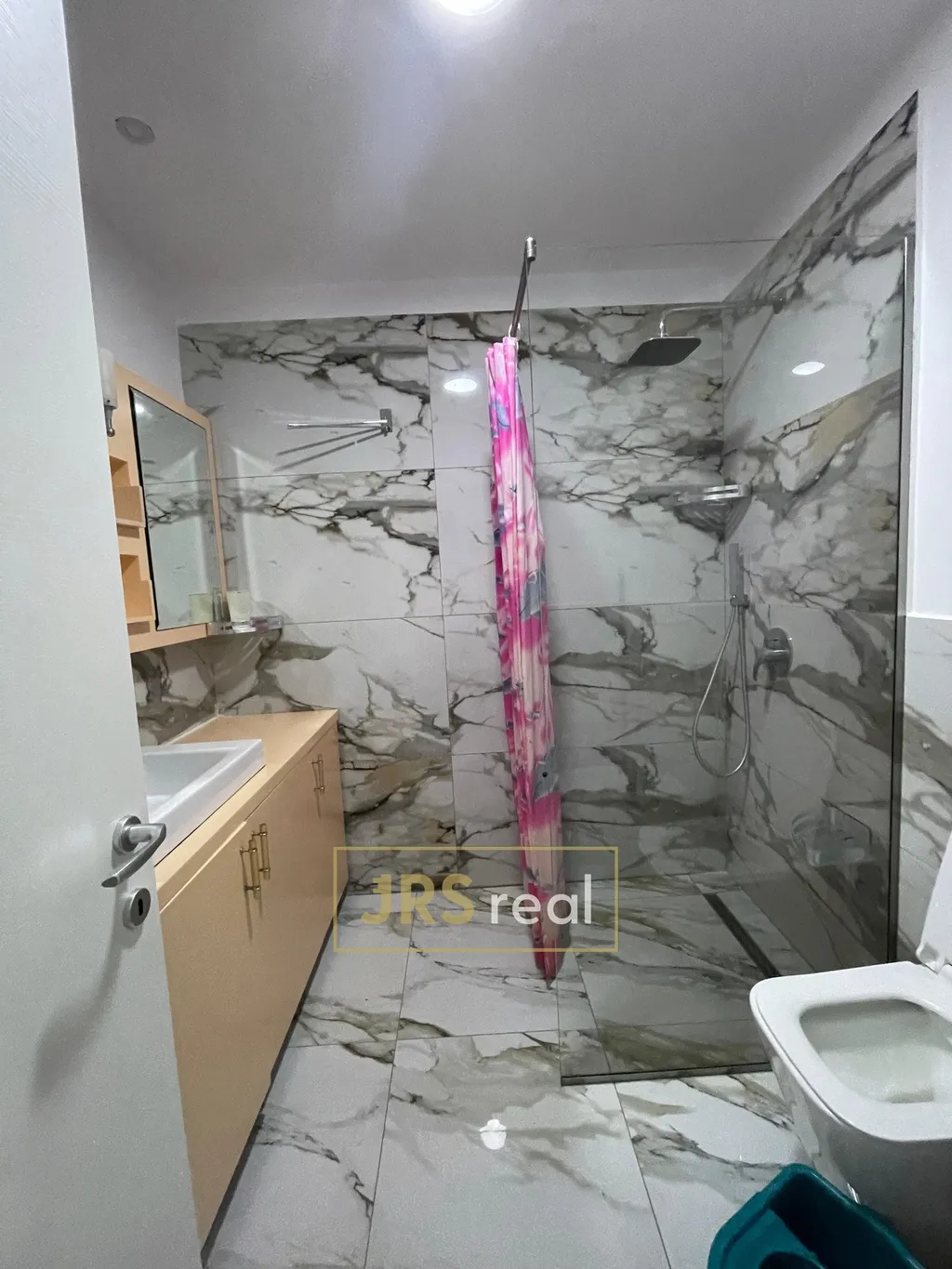 Ve výhradním zastoupení majitele nabízíme k prodeji plně zařízený byt 1+1 ve městě Durrës v Albánii. Byt se nachází v 8. patře bytového domu s výtahem a jeho celková plocha činí 64 m². Po vstupu nás přivítá prostorná předsíň, kde je k dispozici botník. Naproti vchodovým dveřím je koupelna vybavená sprchovým koutem, umyvadlem, toaletou, skříňkou a pračkou. Z chodby se dále dostanete do prostorné ložnice, kde najdete šatní skříň, noční stolky, dvoulůžkovou a jednolůžkovou postel. Na konci chodby je vstup do obývacího pokoje propojeného s kuchyňským koutem. V kuchyni je k dispozici je sporák, trouba, lednice a jídelní stůl se židlemi. Obývací část disponuje pohodlnou pohovkou, taburety, konferenčním stolkem, televizorem a televizním stolkem. Z obývacího pokoje je vstup na balkon, odkud si můžete vychutnat nádherný výhled na moře. Na balkoně se nachází stůl a dvě židle – ideální místo pro ranní kávu nebo večerní relaxaci. Dispozice bytu je ideální jak pro rodinnou dovolenou, tak i pro celoroční bydlení nebo investici. Byt je situován v oblíbené lokalitě s výbornou dostupností všech služeb. V případě zájmu kontaktujte makléře.