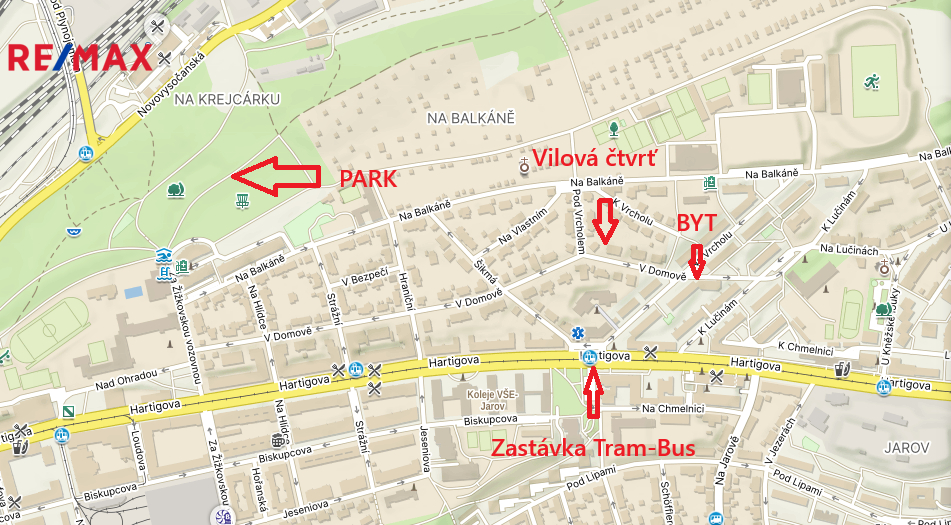 Velmi žádaná lokalita v okolí veškerá občanská vybavenost (vč. školky, školy, gymnázia, supermarketu, lékaře, pošty). Jen pár metrů od zastávky tramvaje a autobusu. Pro volnočasové aktivity je v blízkosti park Krejcárek a ulice navazuje vilovou čtvrť.