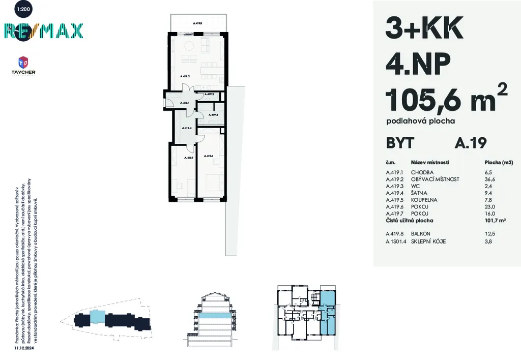 Nabízím k prodeji moderní byt 3+kk o velikosti 105,6 m² s prostorným balkonem 12,5 m2.
