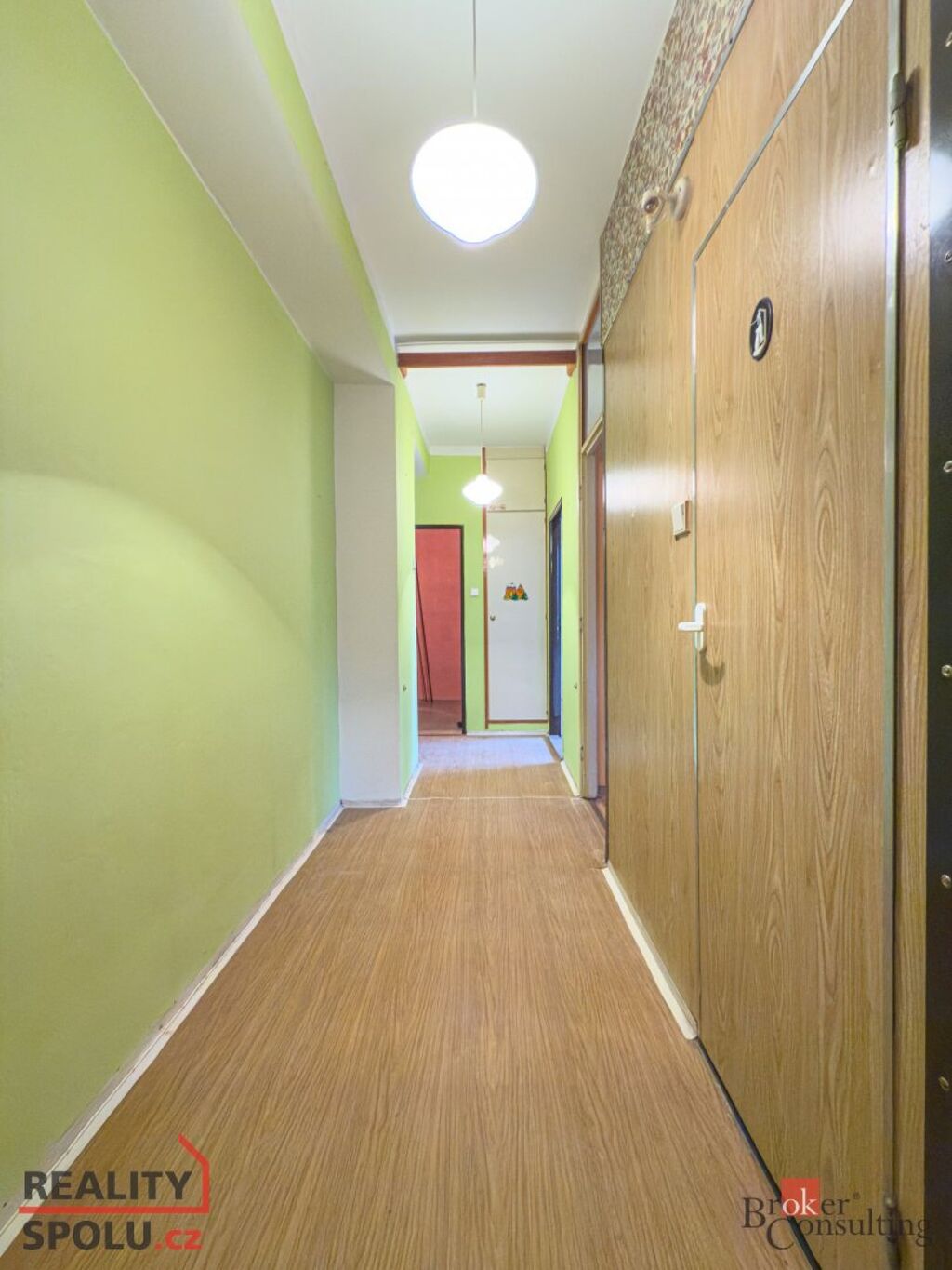 Byt tvoří dva neprůchozí pokoje, kuchyň, koupelna, samostatné wc a prostorná komora, kterou lze využít jako šatnu či praktický úložný prostor. K bytu náleží sklepní kóje.