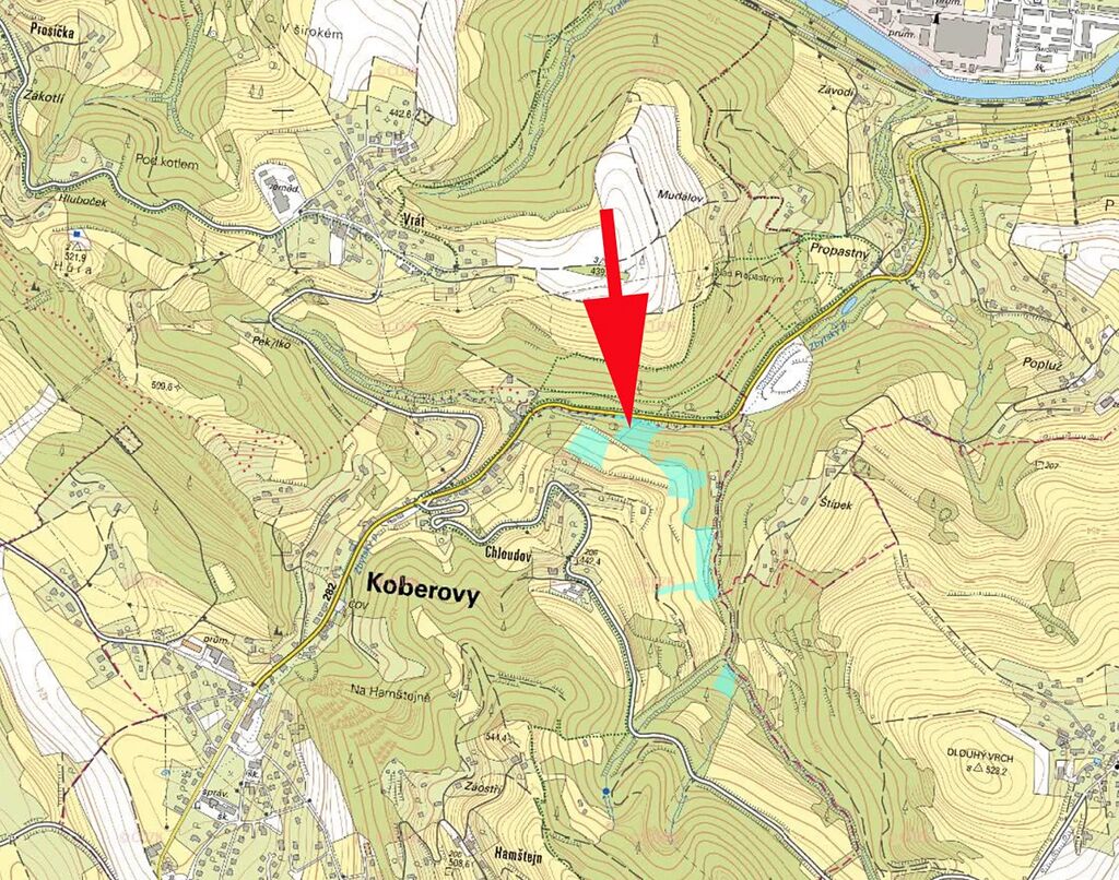 Prodáme pozemek, ostatní plochu s porostem stromů (možno snadněji kácet, než v lese) v k.ú. Koberovy, parc.č. 4568.