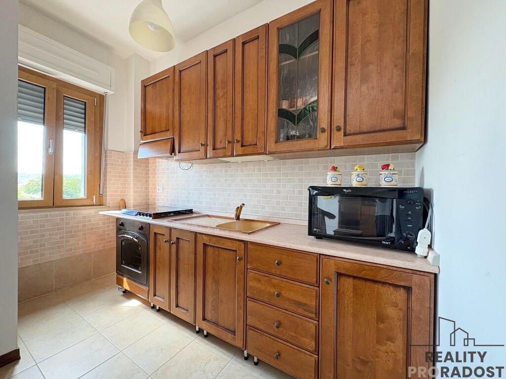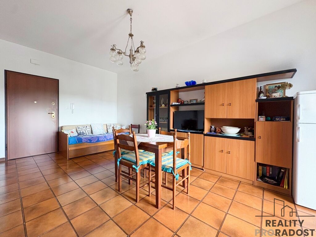 Samotná nemovitost působí velmi příjemně a svěže. Najdete zde prostorný obývací pokoj s kuchyňským koutem s přímým vstupem na obytnou terasu, ideální místo pro snídaně na slunci, večerní posezení nebo setkání s přáteli a ložnici, která je světlá a nabízí vstup na rohový balkon, ze kterého se otevírá krásný výhled do okolí. Nechybí koupelna s oknem a sprchovým koutem.