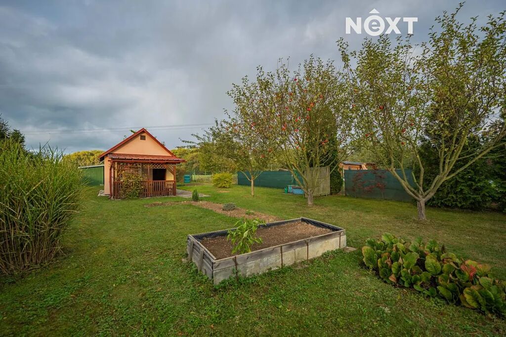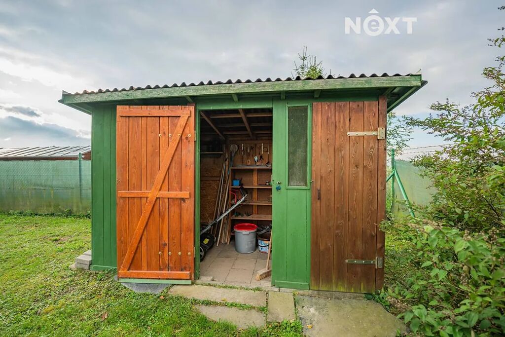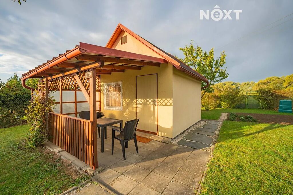 Zahrádka je pečlivě udržovaná se záhony a rostou na ní okrasné rostliny a ovocné stromy. Najdete zde chatku a zahradní domek na nářadí. Chatka má č.ev. a v její přední části je zastřešené posezení.