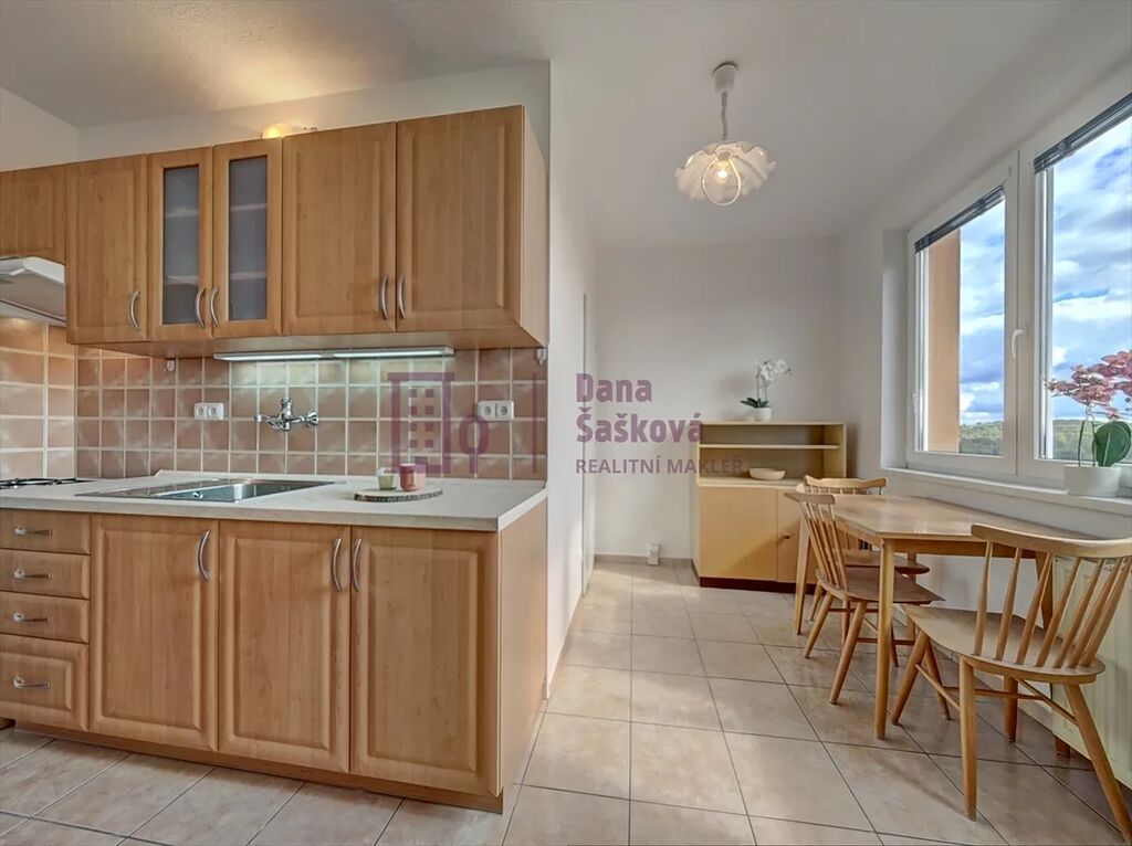 Pronájem slunného bytu o celkové výměře 42 m2 v sedmém patře panelového domu s výtahem na sídlišti Vajgar, Jindřichův Hradec.