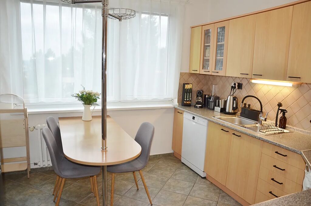 Nabízíme k pronájmu velmi prostorný byt o velikosti 4+1/L (93m2) v Praze 4 Modřanech v Petržílově ulici. Byt je situován v 1.patře nízkopodlažního domu. Popis: všechny pokoje jsou samostatné se vstupem z předsíně. Byt je kompletně po rekonstrukci, na podlahách plovoucí podlahy + dlažba, v koupelně rohová vana a WC samostatné. Z vybavení k dispozici bude: kuchyňská linka se sporákem, myčka, lednice, pračka se sušičkou, v kuchyni jídelní stůl + židle, v ložnici vestavěná postel se skříněmi na míru, jinak obývací pokoj a dvě ložnice bez vybavení. Západní a východní orientace. V okolí vysoká občanská vybavenost a dobrá dostupnost MHD, zastávka 50m- BUS 150 na metro C Kačerov či 500 m- BUS 165 metro C Háje. Ostatní požadavky majitele po kontaktování.