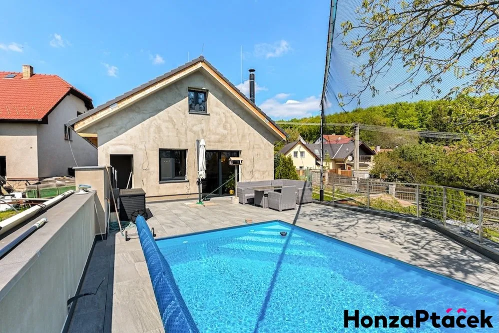 Chcete bydlet v klidném prostředí kousek od Prahy, obklopeni přírodou, ale přitom v moderním domě? Na okraji Voděradských bučin nabízím k prodeji novostavbu rodinného domu 3+kk s velkou terasou, bazénem a sklepem o rozloze více než 60 m². Nemovitost stojí na pozemku o celkové výměře 1 055 m² (321 m² zastavěná plocha a 734 m² zahrada).
