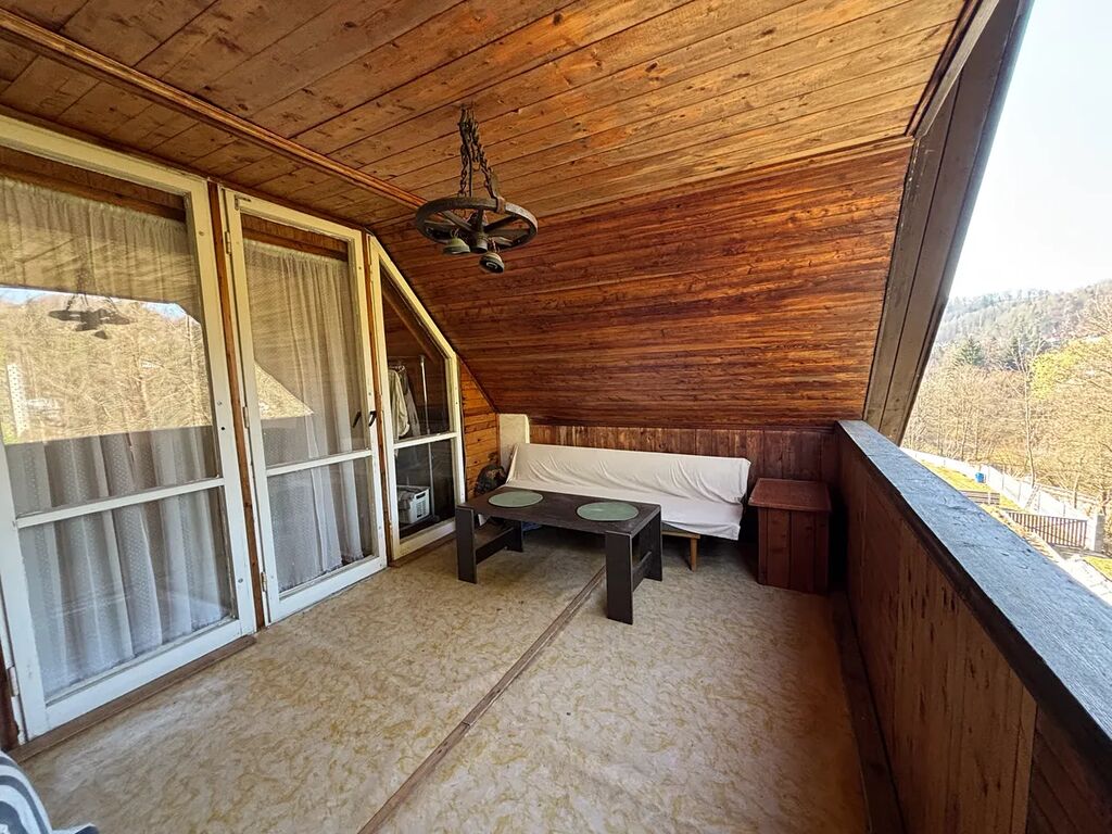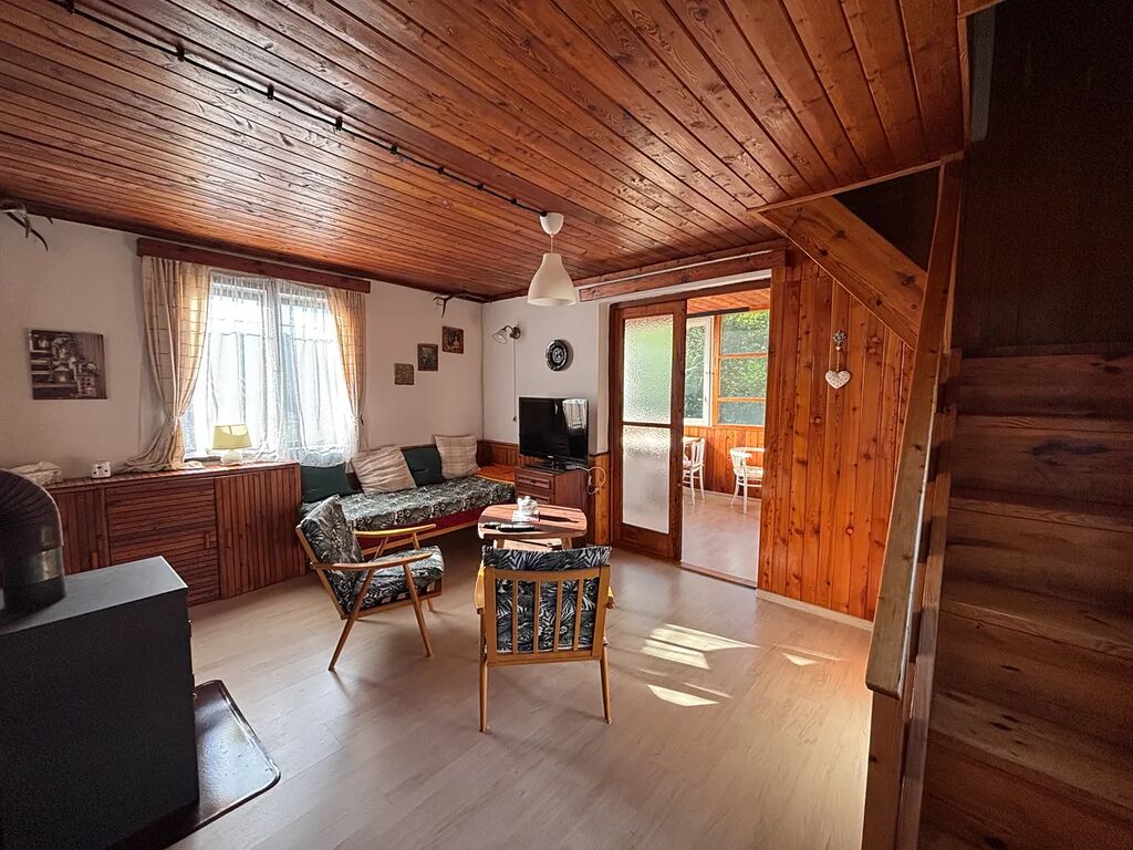 Zděná chata z roku 1964, v roce 1981 chata rozšířena o zděnou část zázemí koupelny a přístavby 2.NP s dřevěnou verandou. Nemovitost je ve velmi dobrém technickém stavu, napojena na obecní studnu s pitnou vodou na půlroční bázi – jaro až podzim, na zimu voda uzavřena. Odpad sveden do jímky, vytápění – kamna na tuhá paliva, ohřev vody – el.bojler. Chata disponuje v 1.NP zádveřím, koupelnou s vanou, chodbou, WC, samostatnou kuchyní, prostorným obývacím pokojem s téměř novými kamny, ložnicí, prosklenou verandou, komorou pod schody. Ve 2.NP je velký otevřený prostor – pokoj s verandou. Dostatek úložného prostoru nabízí pochozí půda, sklep a dřevník na zahradě. Podlahové krytiny – dřevo, dlažba. Na zahradě jsou vysázeny stromy, keře, celý pozemek je oplocen.
