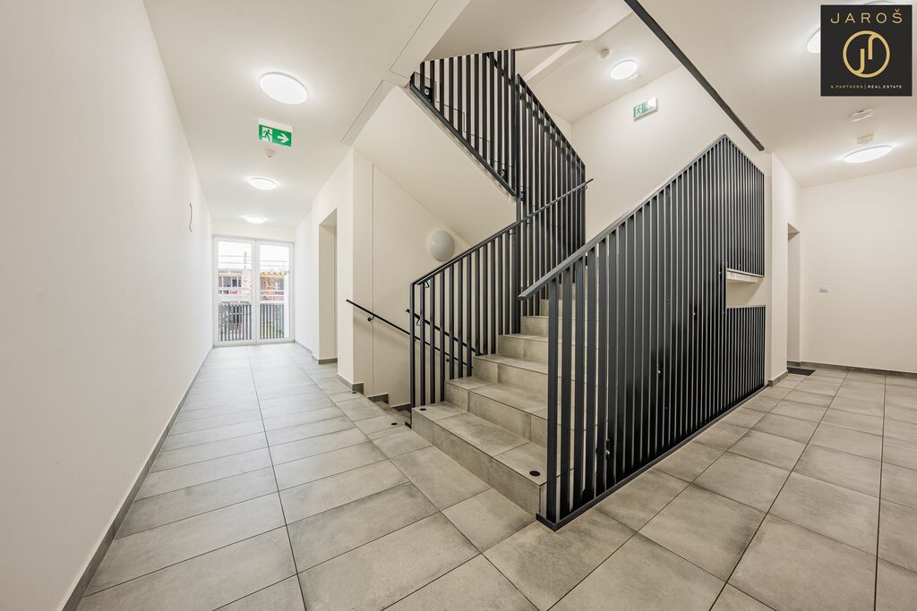 Byt je navržen s důrazem na kvalitu a komfort. Podlahy jsou dřevěné, obývací pokoj je propojen s moderní kuchyní vybavenou vestavnou lednicí, myčkou, elektrickou troubou a indukční varnou deskou. V ložnici najdete prostornou vestavěnou skříň na míru, další úložné prostory nabízí chodba s vestavěnou skříní a botníkem. Koupelna je vybavena vanou.