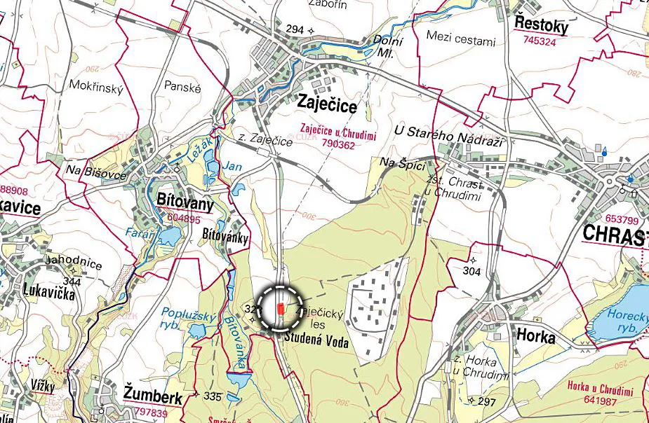 V zastoupení vlastníka nabízím k prodeji pozemek, který částečně zasahuje do zastavitelného území. Parcela leží v katastrálním území Zaječice u Chrudimi. Vlastník prodává podíl 1/2 na parcele číslo 830/14 zapsané na listu vlastnictví 144. Nachází se na jihu katastrálního území u části Studená Voda.