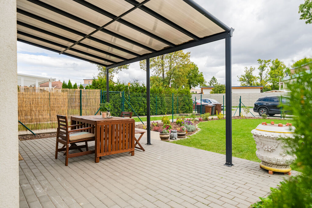 Pokud hledáte pohodlné bydlení pro Vaši rodinu se zahrádkou a zároveň v blízkosti Prahy, máme pro Vás skvělou nabídku na koupi řadového domku. Jedná se v podstatě o mezonetový byt 3kk, 86 m2, se zastřešenou terasou, zahradním domkem, parkováním a pečlivě udržovanou zahradou o rozloze 228 m2.