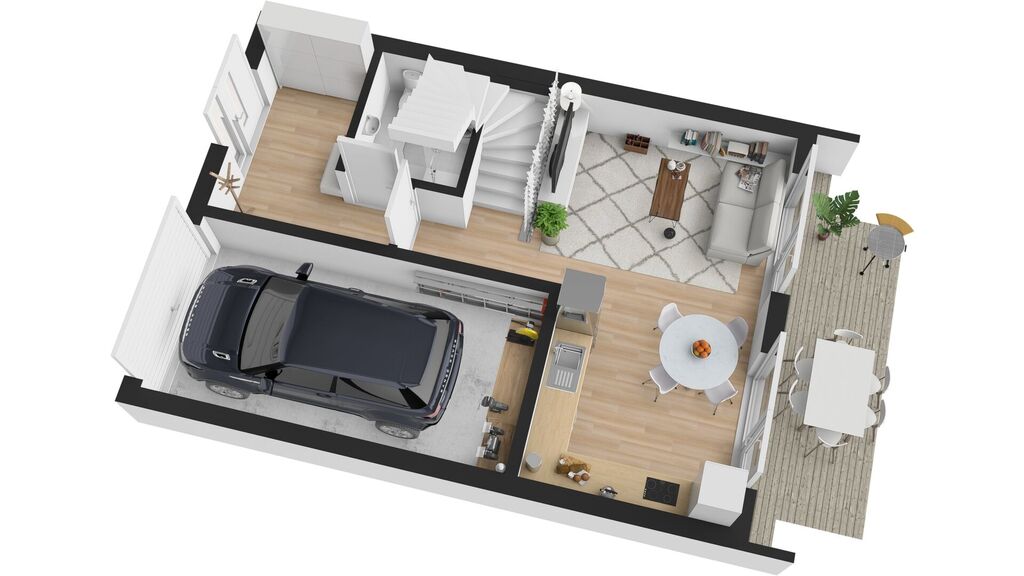 V přízemí domu je obývací pokoj s jídelnou, kuchyní, vstupem na terasu domu a dále do zahrady. Kuchyňská linka je vybavena spotřebiči ( varná deska, digestoř, trouba, mikrovlnná trouba, myčka nádobí, lednice, mrazák). Garáž domu je přístupná vraty na dálkové ovládání a je prakticky propojena dveřmi s interiérem domu, což poskytuje pohodlí v rámci nákupů a umožňuje jednoduché využití garáže v rámci úložného prostoru. V přízemí domu je vstupní chodba, koupelna se sprchou a toaletou. Patro domu má tři samostatné pokoje. V ložnici jsou vestavné skříně. Pokoje je možno využít dle vlastní potřeby, jako dětské pokoje, ložnice či pracovnu. V patře domu je další koupelna se sprchovým koutem a vanou. Toaleta je zde samostatná. V domě jsou předokenní žaluzie. Zahrada domu je velmi pečlivě udržovaná, rovinatá, zatravněná se vzrostlými stromy, dřevinami. Za zmínku stojí také maliny a rybíz. Zahrada má jednoduchý systém zavlažování. Výhodou je úložný domeček a především zastřešená terasa domu, která svým využitím reálně zvětšuje plochu domu.